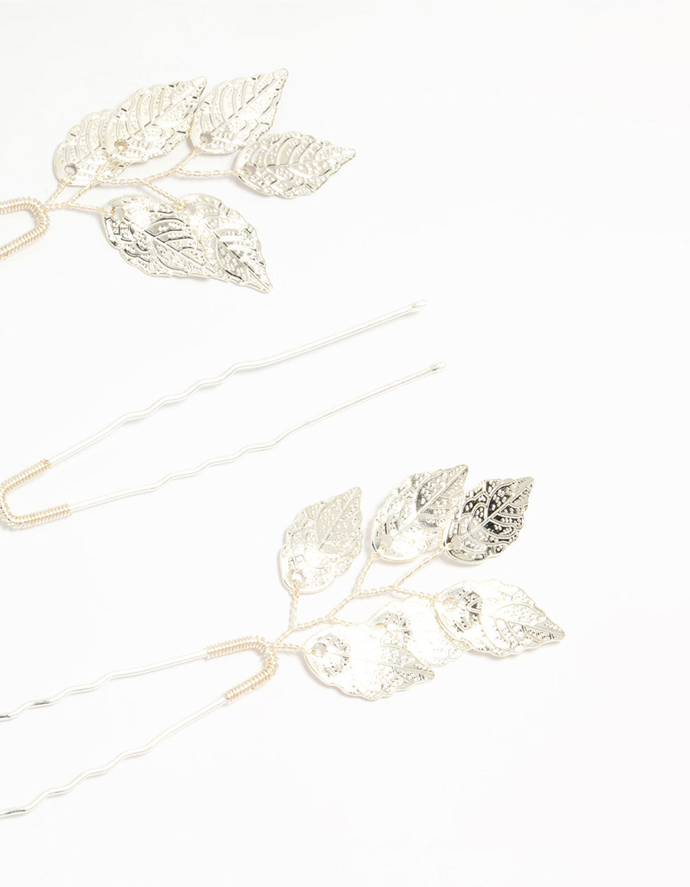 Add a touch of timeless elegance to your look with this Silver Metal Leaf Hair Pins Pack. These stunning hair accessories feature sleek silver-toned leaves, perfect for adding a delicate, nature-inspired flair to any hairstyle. Ideal for brides, bridesmaids, or anyone looking to elevate their special occasion look, these hair pins are versatile and effortlessly chic. Use them to secure loose waves, accent an updo, or add a stylish twist to a half-up style. Whether you're walking down the aisle or attending a glamorous event, these silver hair pins pair beautifully with flowing dresses, sparkling jewellery, and romantic vibes.