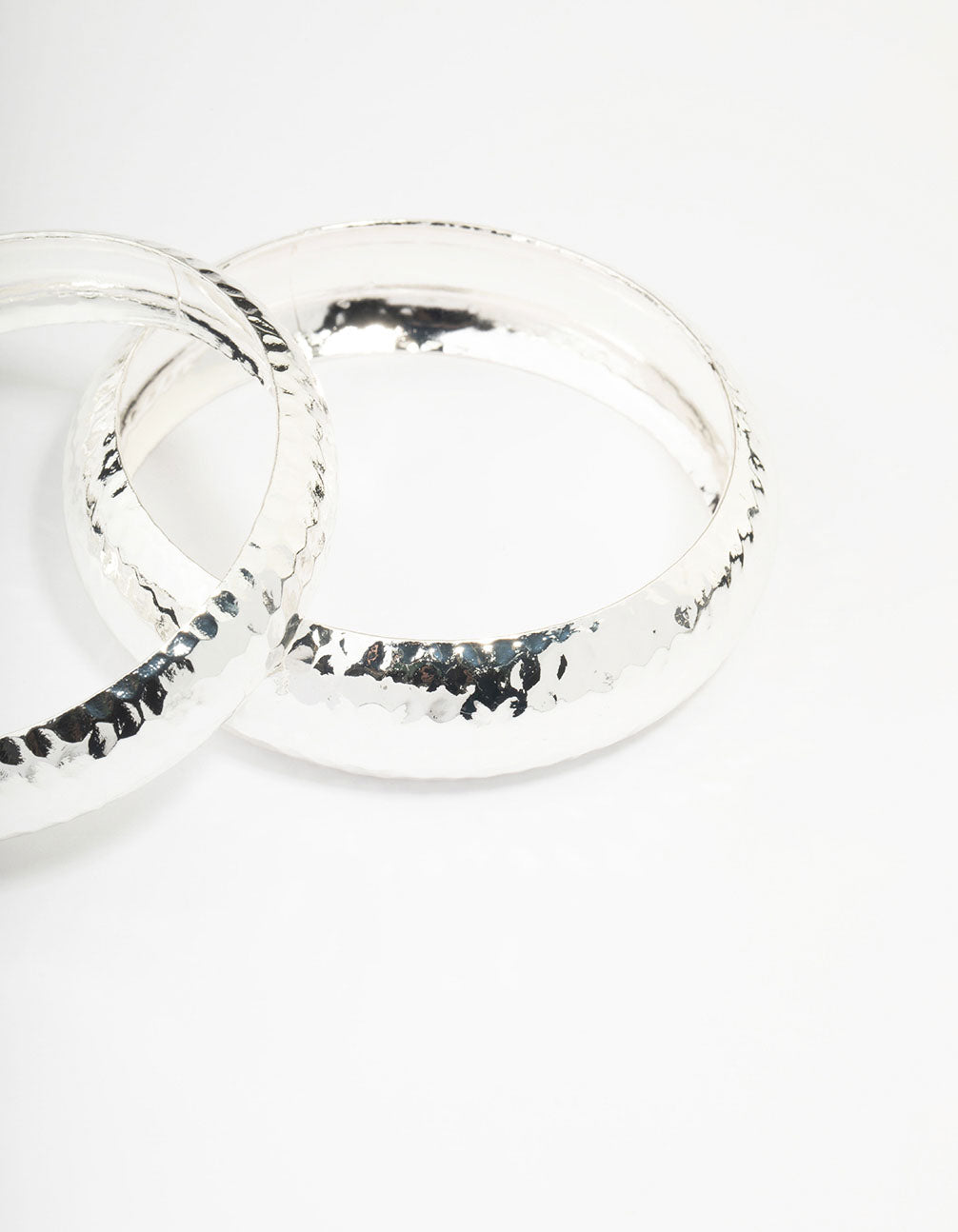 For a bold addition to your stack, style this modern bangle pack. This pack includes three individual, silver-toned bangles, designed with a bold silhouette and molten textured finish,