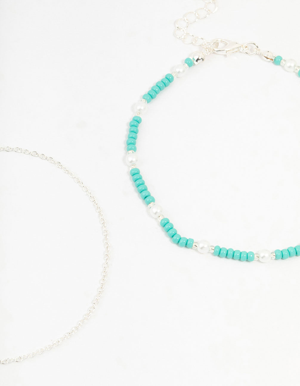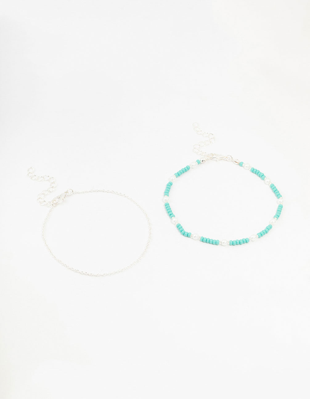 Step up your accessory game with this Silver Pearl Beaded Anklets Pack. Featuring a playful mix of blue and white beads, these anklets are perfect for adding a pop of colour to your outfit. Whether you're strolling on the beach, heading to a festival, or just rocking your summer sandals, these dainty ankle bracelets bring effortless charm. Style them with flowy dresses or cropped jeans for that breezy, carefree vibe. Ideal for layering or wearing solo, these versatile ankle chains are a must-have for every jewellery lover.