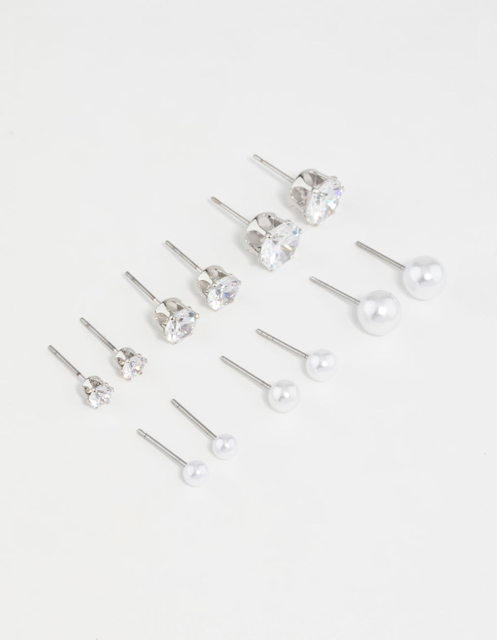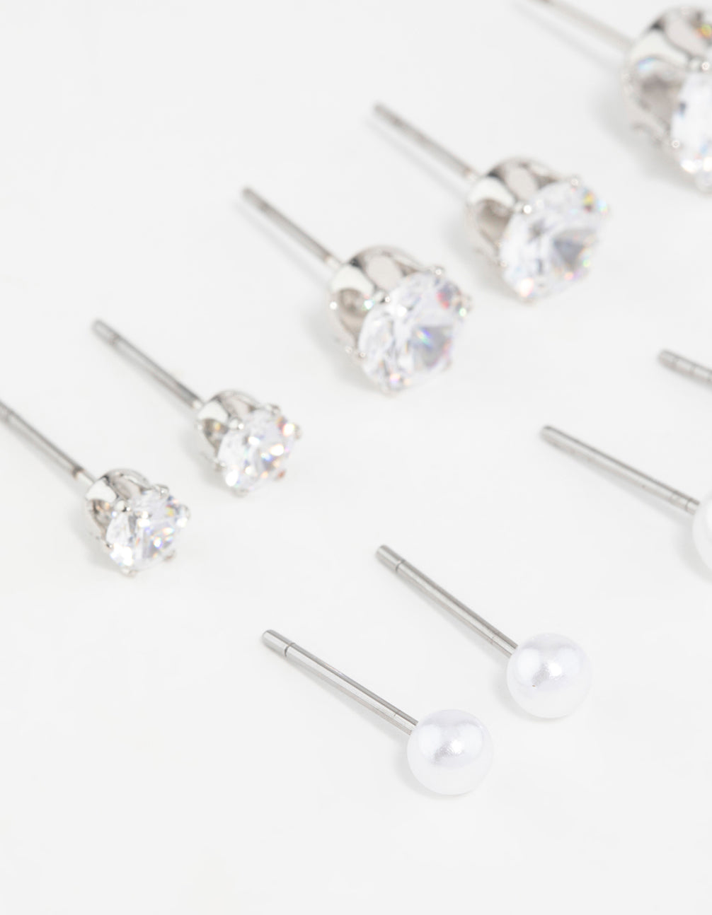 Silver Pearl & Cubic Zirconia Stud Earrings 6-Pack