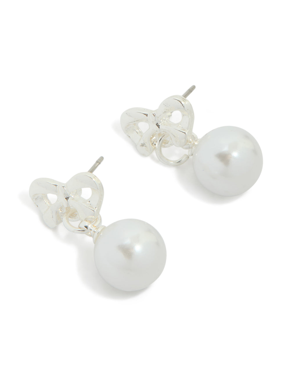 Silver Pearl Drop Bow Stud Earrings