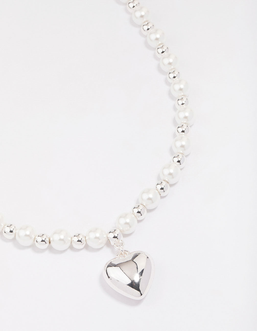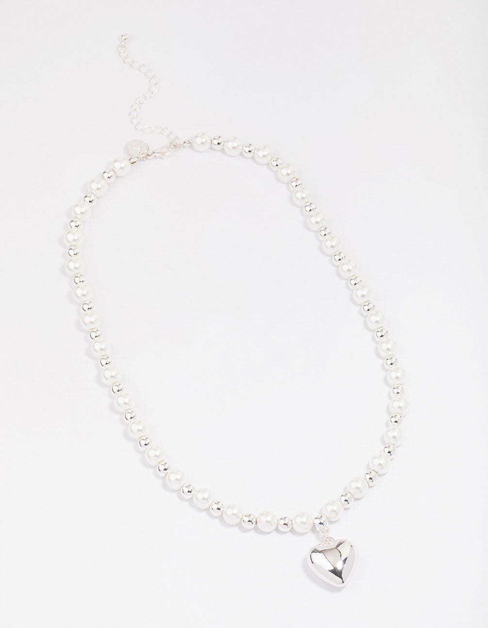Add a lovable touch to your look with this stunning, silver chain necklace. This unique heart pendant features a chunky chain, adorned with a strand of pearls for a refined finish.