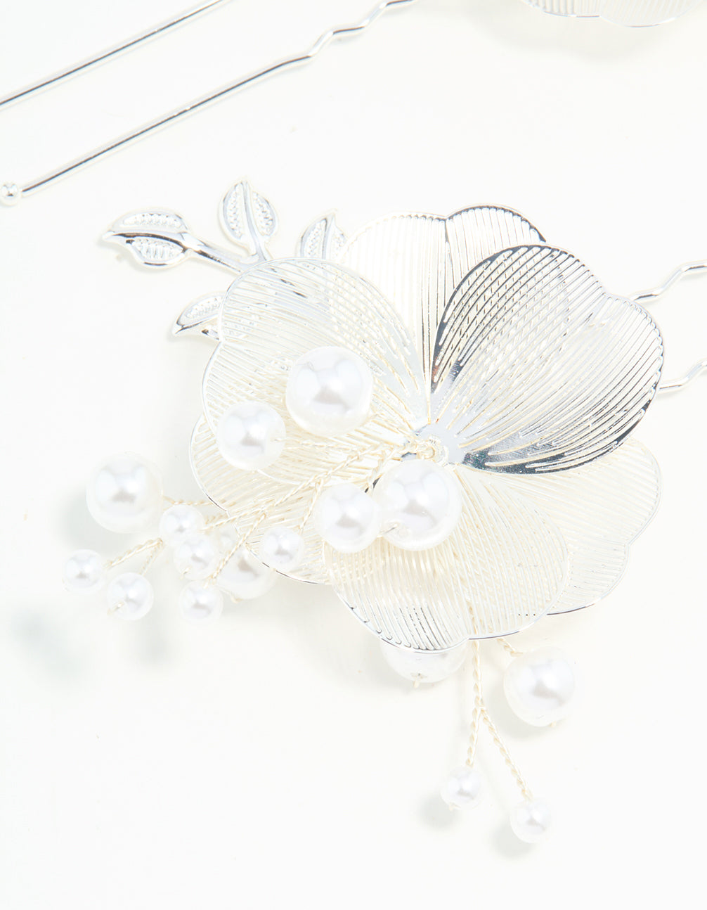 Silver Pearl Laser-Cut Flower Hair Pins 2-Pack