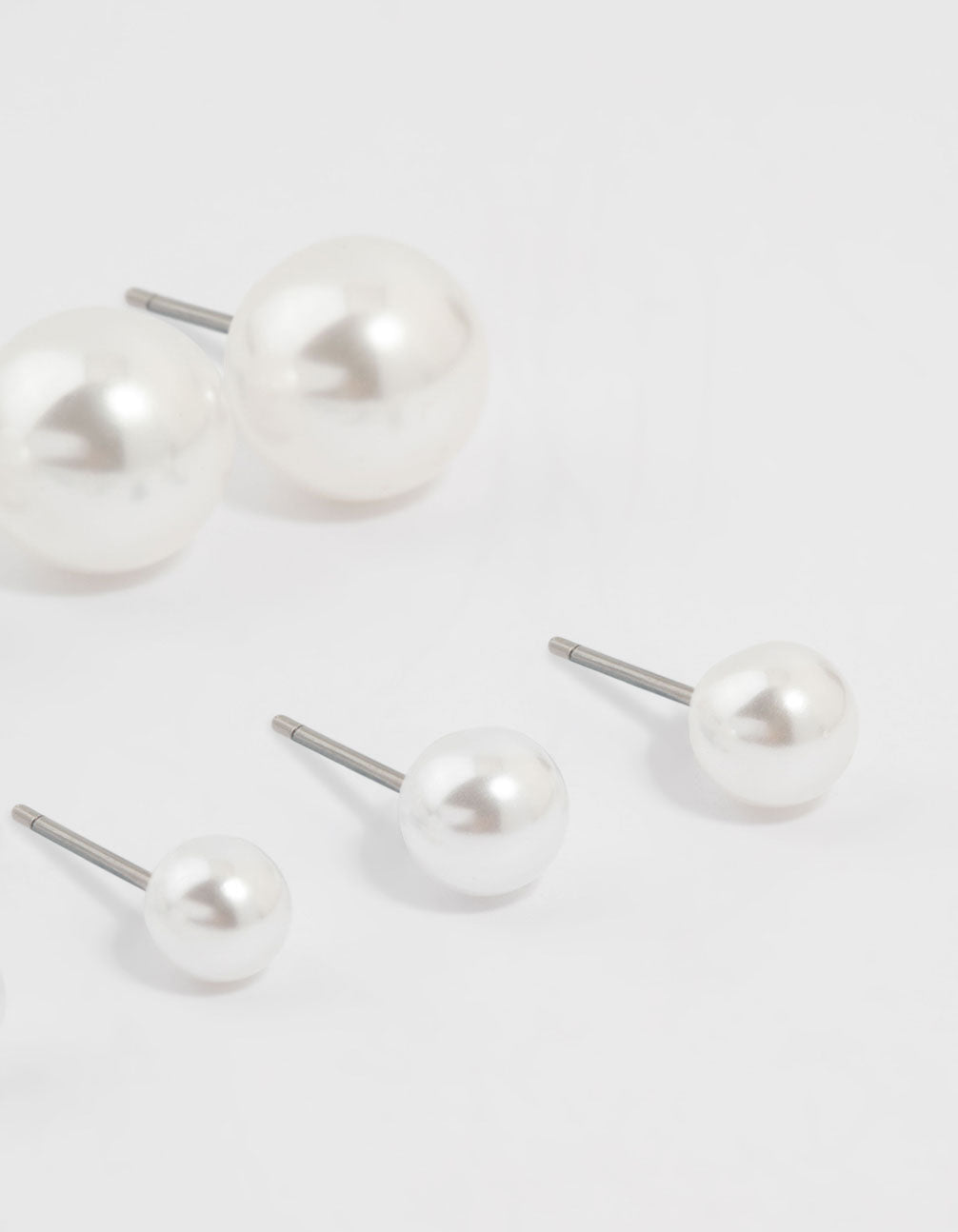 Elevate your style with this pearl stud pack! This set features eight pairs of different-sized pearl studs for a touch of elegance to any outfit.