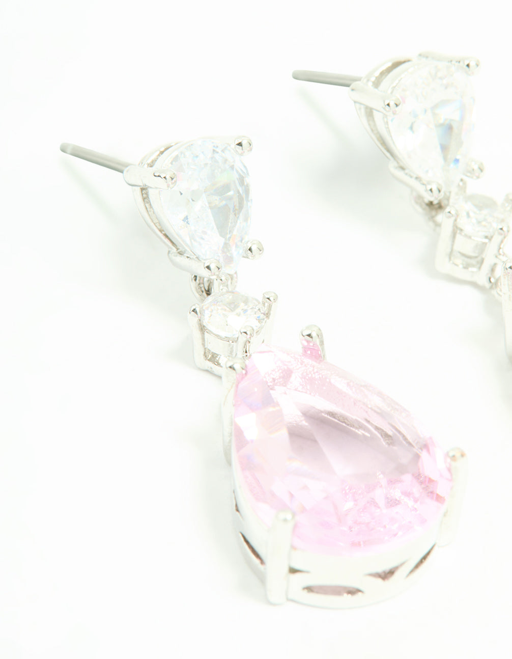Silver Pink Cubic Zirconia Pear Drop Earrings