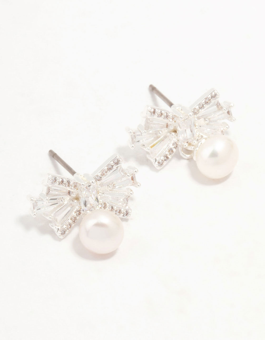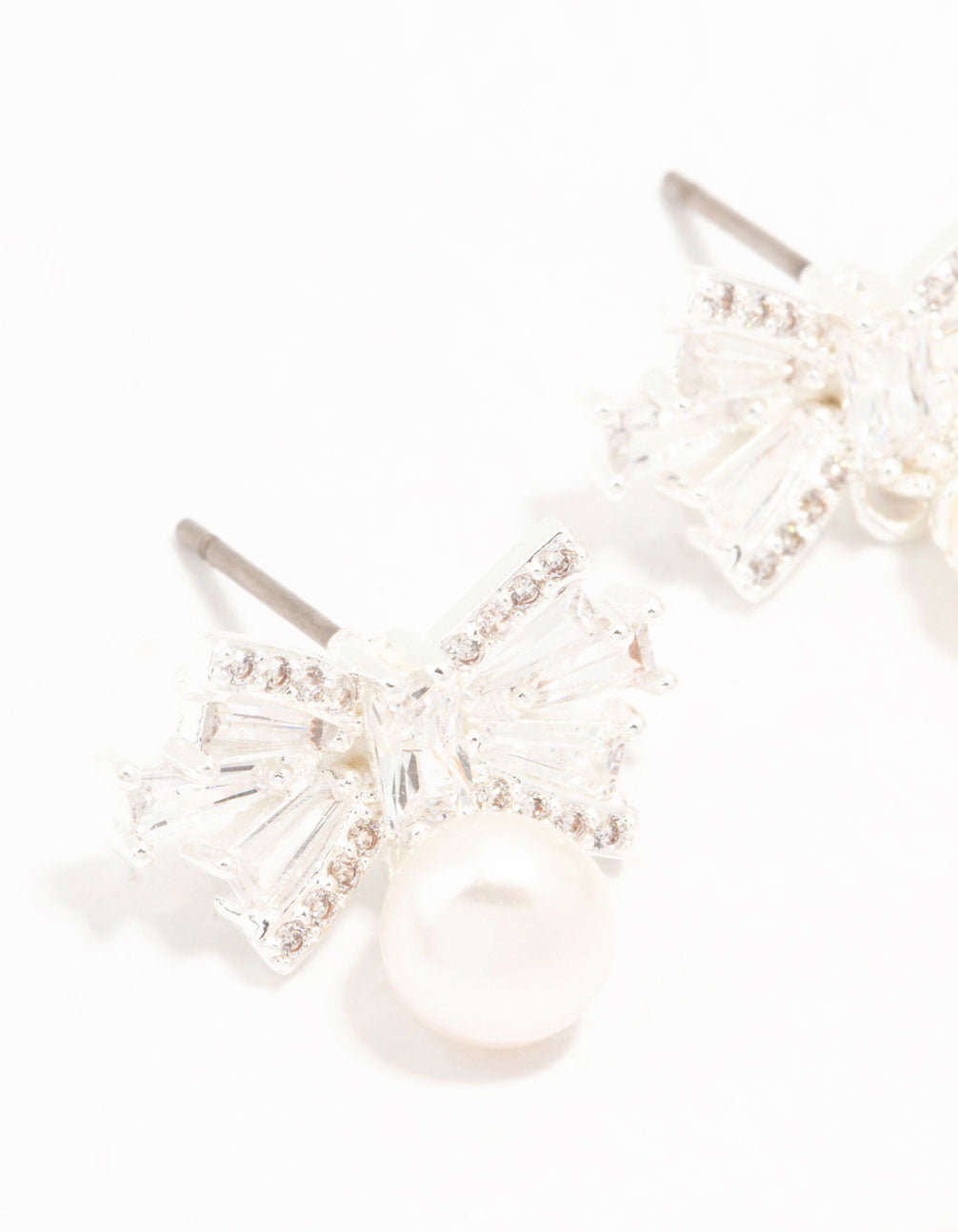 Silver Plated Baguette Cut Cubic Zirconia Bow & Freshwater Pearl Drop Earrings Silver Plated Baguette Cut Cubic Zirconia Bow & Freshwater Pearl Drop Earrings Silver Plated Baguette Cut Cubic Zirconia Bow & Freshwater Pearl Drop Earrings