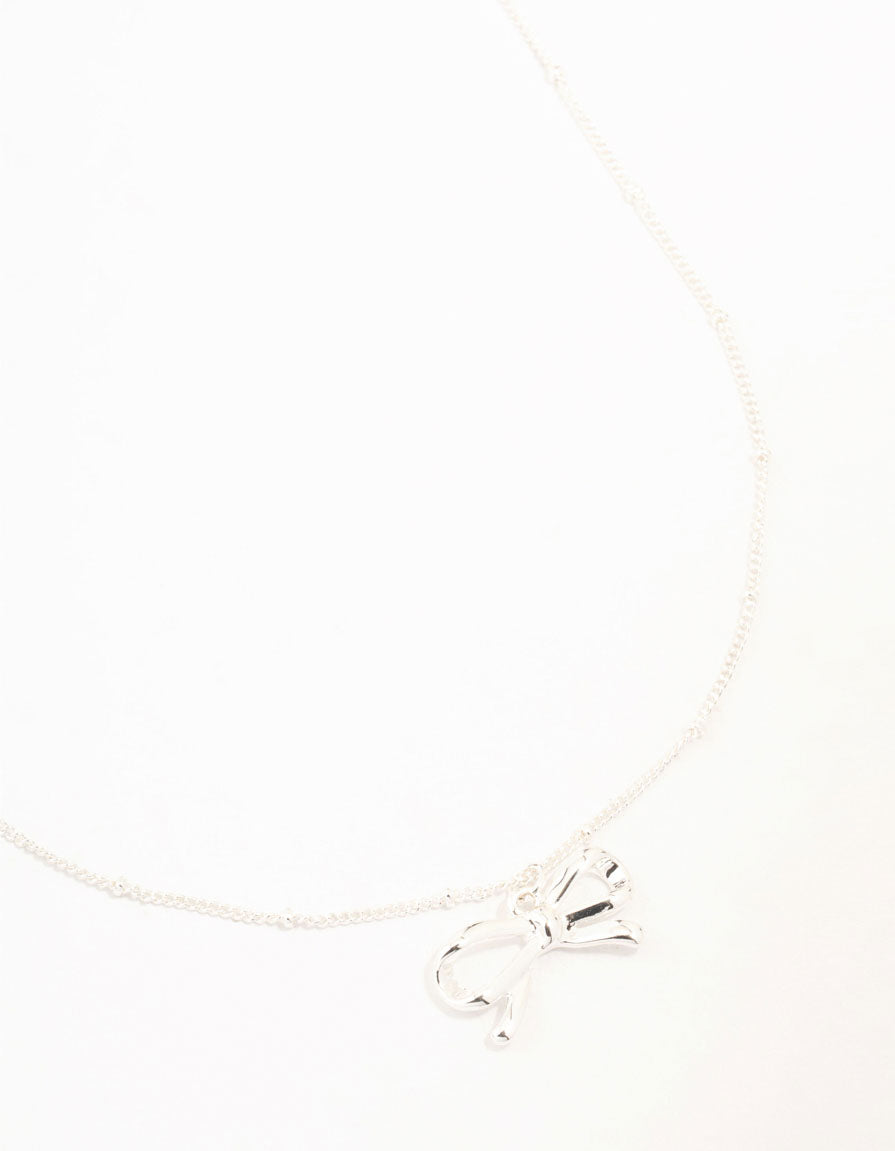 Embrace the coquette trend with this sleek chain necklace. This necklace features effortlessly cool silver plating and includes a playful sleek bow design and a fun ball and chain design. It is perfect for a subtle, trendy, and flirty layered look.