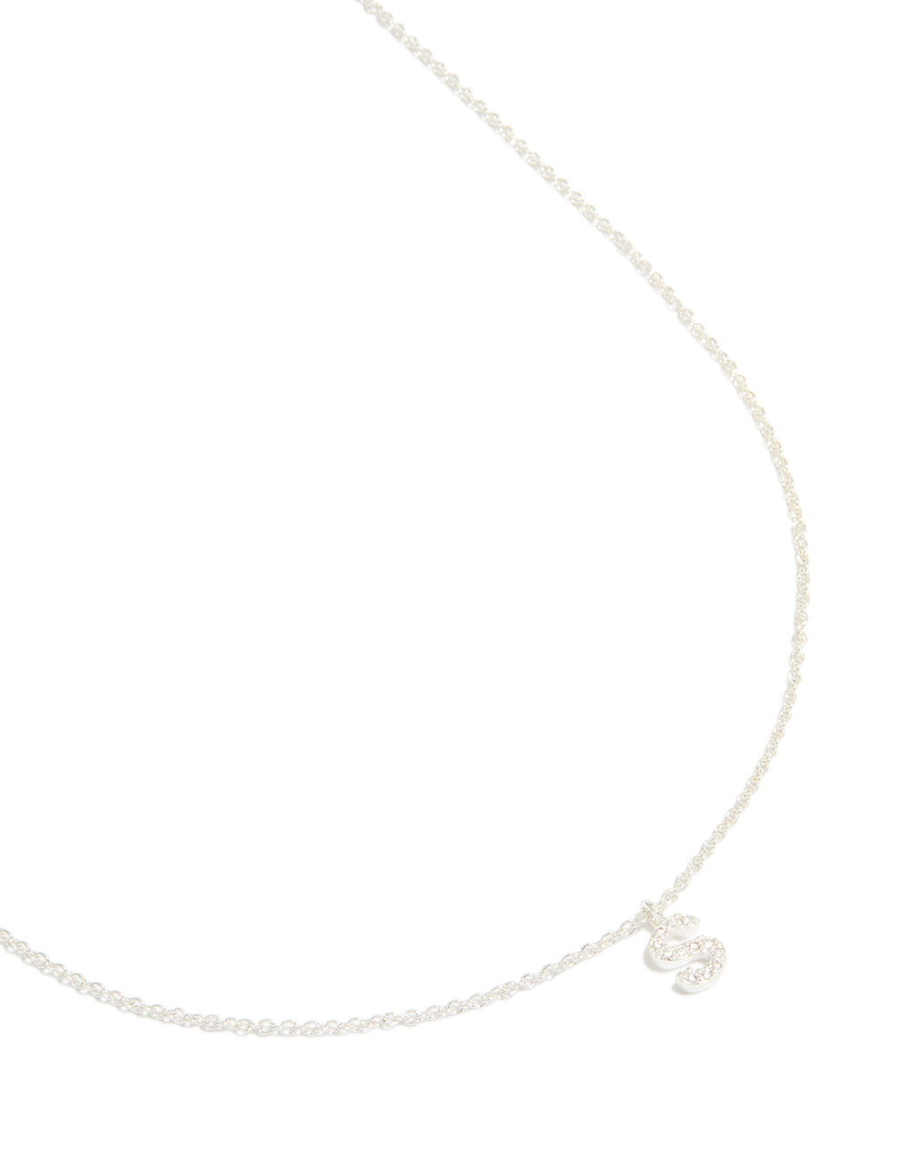 Silver Plated Brass Cubic Zirconia Letter S Necklace