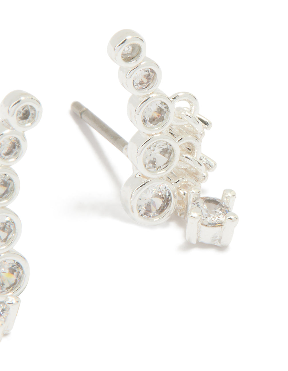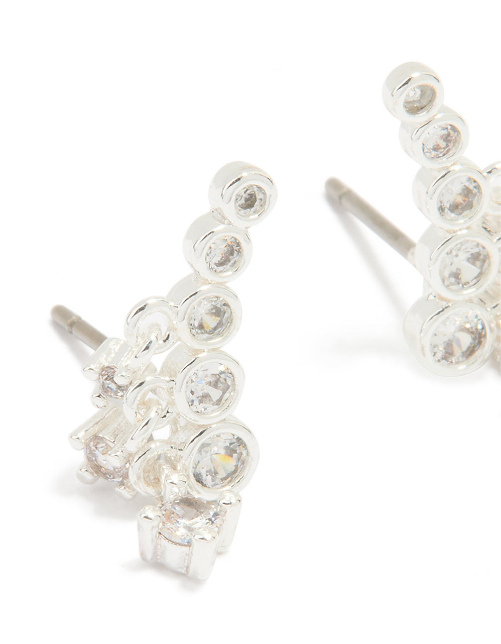 Silver Plated Cubic Zirconia Bezel Crawler Stud Earrings
