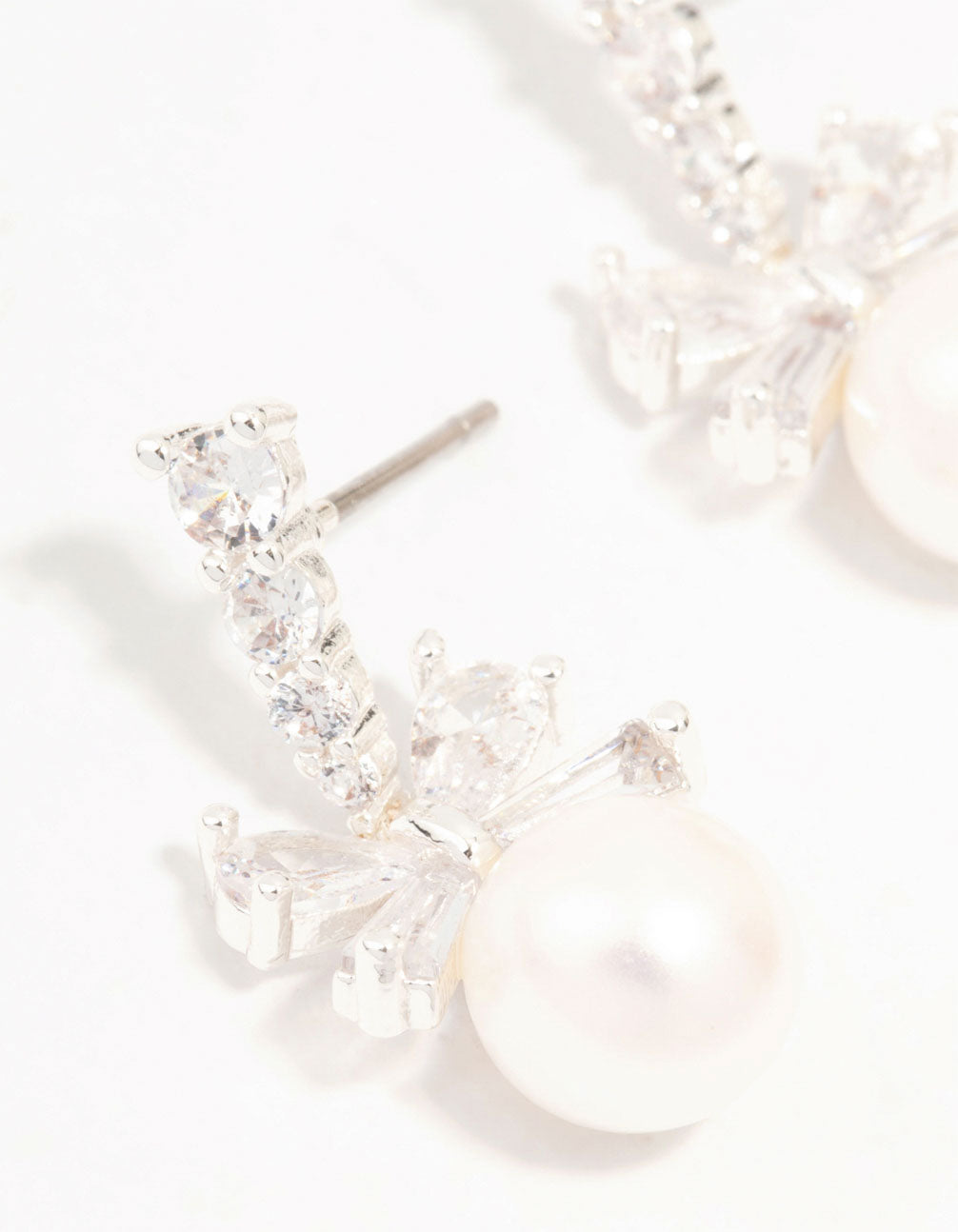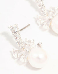 Silver Plated Cubic Zirconia Bow & Freshwater Pearl Drop Earrings