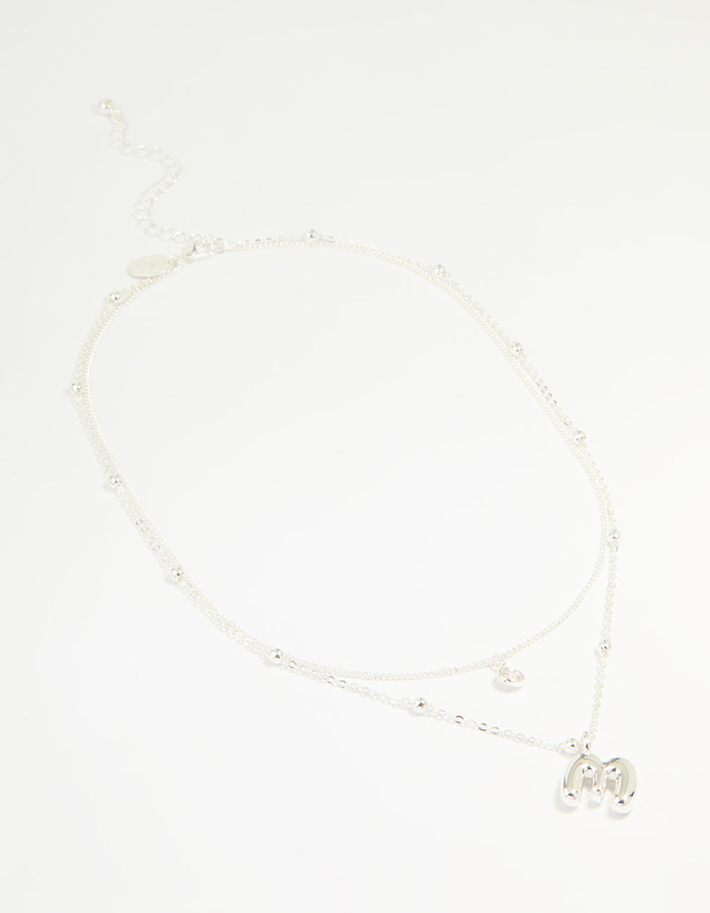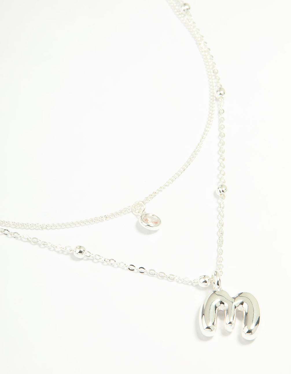 Silver Plated Cubic Zirconia & Bubble Letter M Layered Necklace