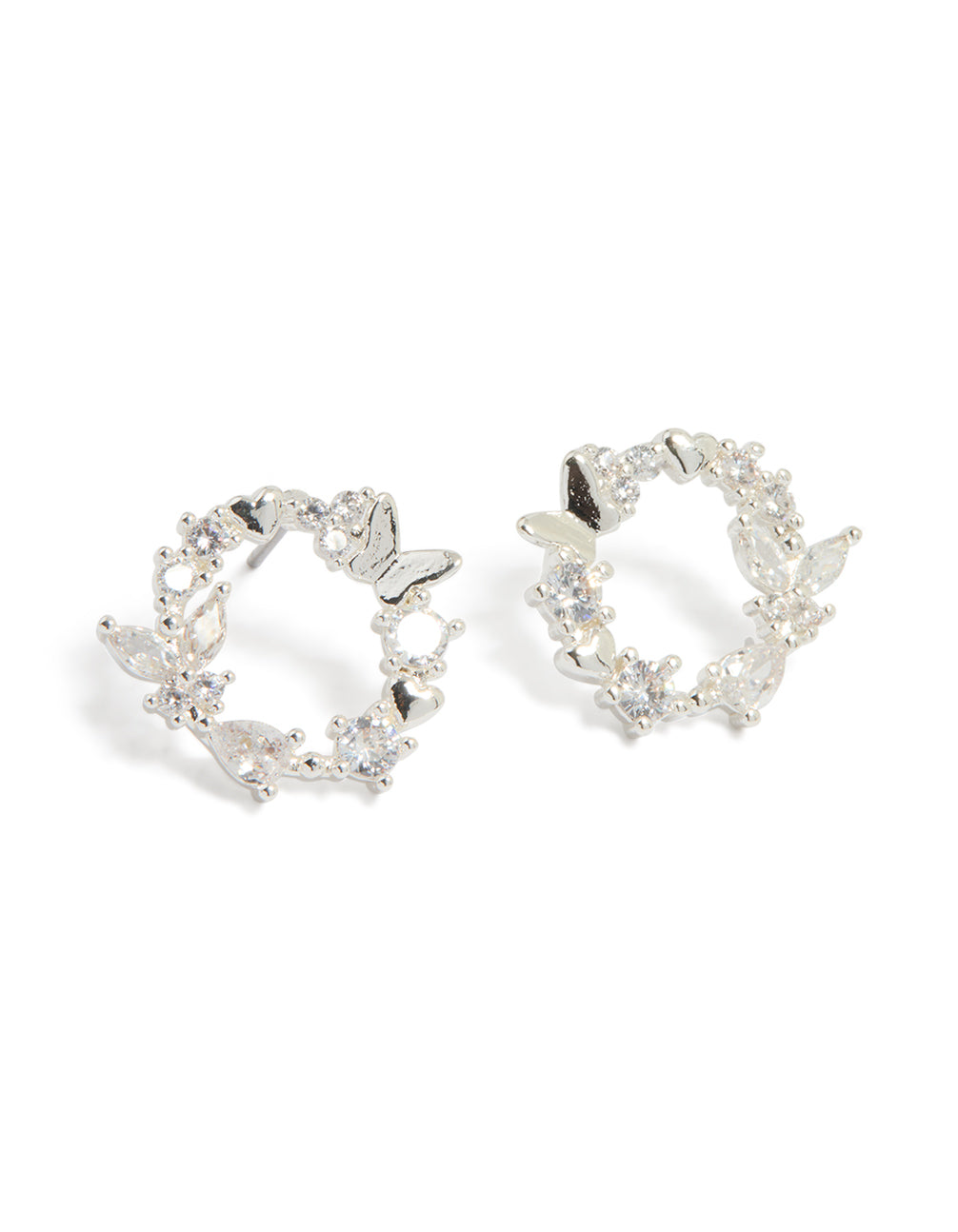 Silver Plated Cubic Zirconia Butterfly Wreath Earrings Silver Plated Cubic Zirconia Butterfly Wreath Earrings Silver Plated Cubic Zirconia Butterfly Wreath Earrings