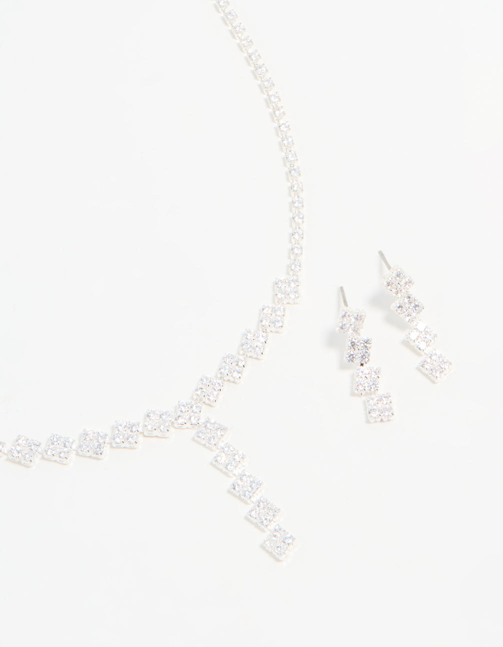 Silver Plated Cubic Zirconia Diamond Shaped Necklace & Earrings Set