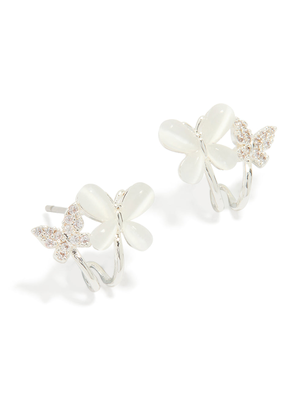 Add a little sparkle to your style with these Silver Plated Cubic Zirconia Double Butterfly Mini Hoop Earrings. Perfectly blending elegance with a playful twist, these dainty hoop earrings feature a charming double butterfly design, accented with shimmering cubic zirconia crystals. Crafted with silver plating, they offer a sleek and polished finish that's ideal for any occasion. Whether you're dressing up for a party, heading out for brunch, or simply adding a touch of glamour to your everyday look, these mini hoops are a versatile choice. Pair them with a flowy dress for a romantic vibe or let them shine with your favourite casual outfit. These silver-plated earrings are perfect for anyone seeking stylish, lightweight hoops with a unique and feminine butterfly motif. A must-have for adding a hint of sparkle wherever you go!