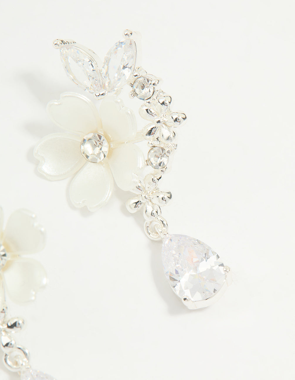 Silver Plated Cubic Zirconia Flower Drop Earrings