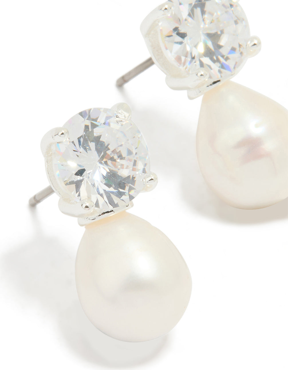 Silver Plated Cubic Zirconia Freshwater Pearl Drop Earrings