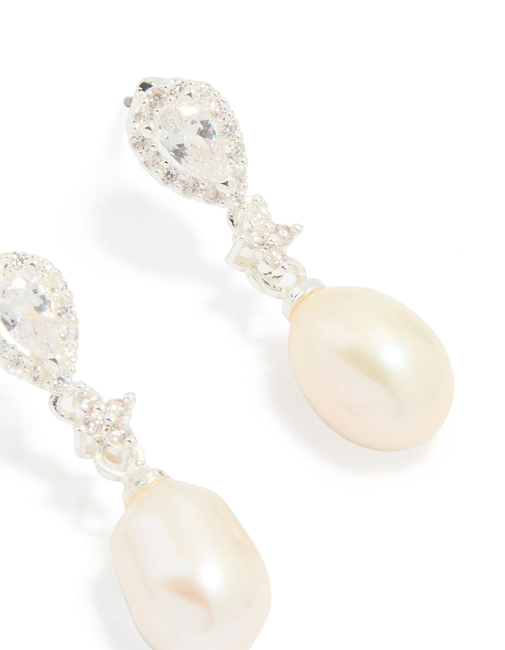 Silver Plated Cubic Zirconia Halo Pearl Drop Earrings