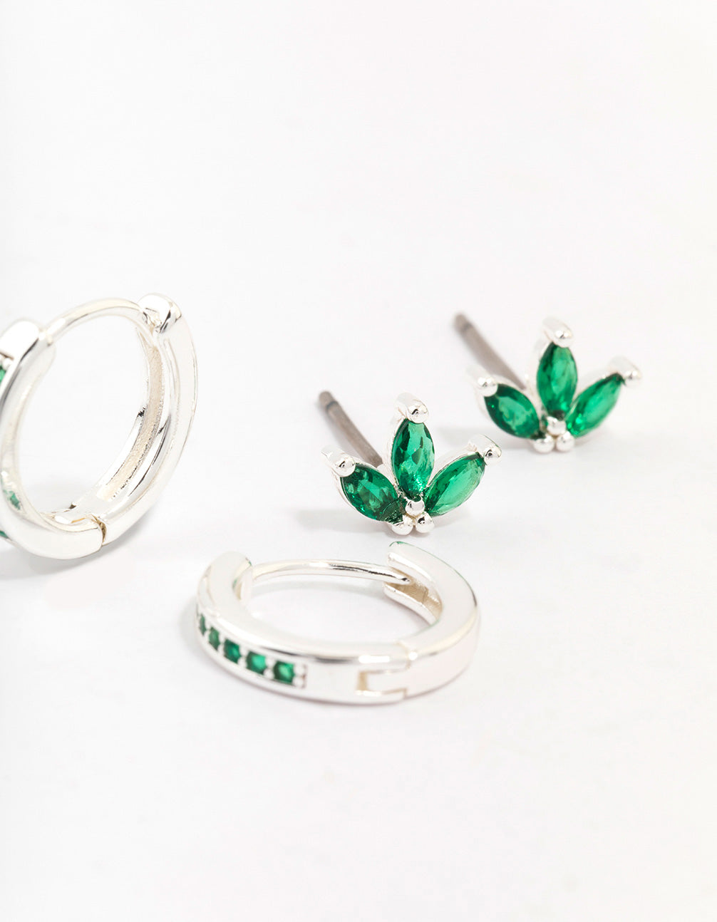 Silver Plated Brass Cubic Zirconia Marquise Stud & Huggie Hoop Earring Pack
