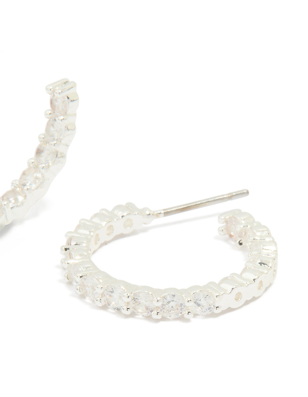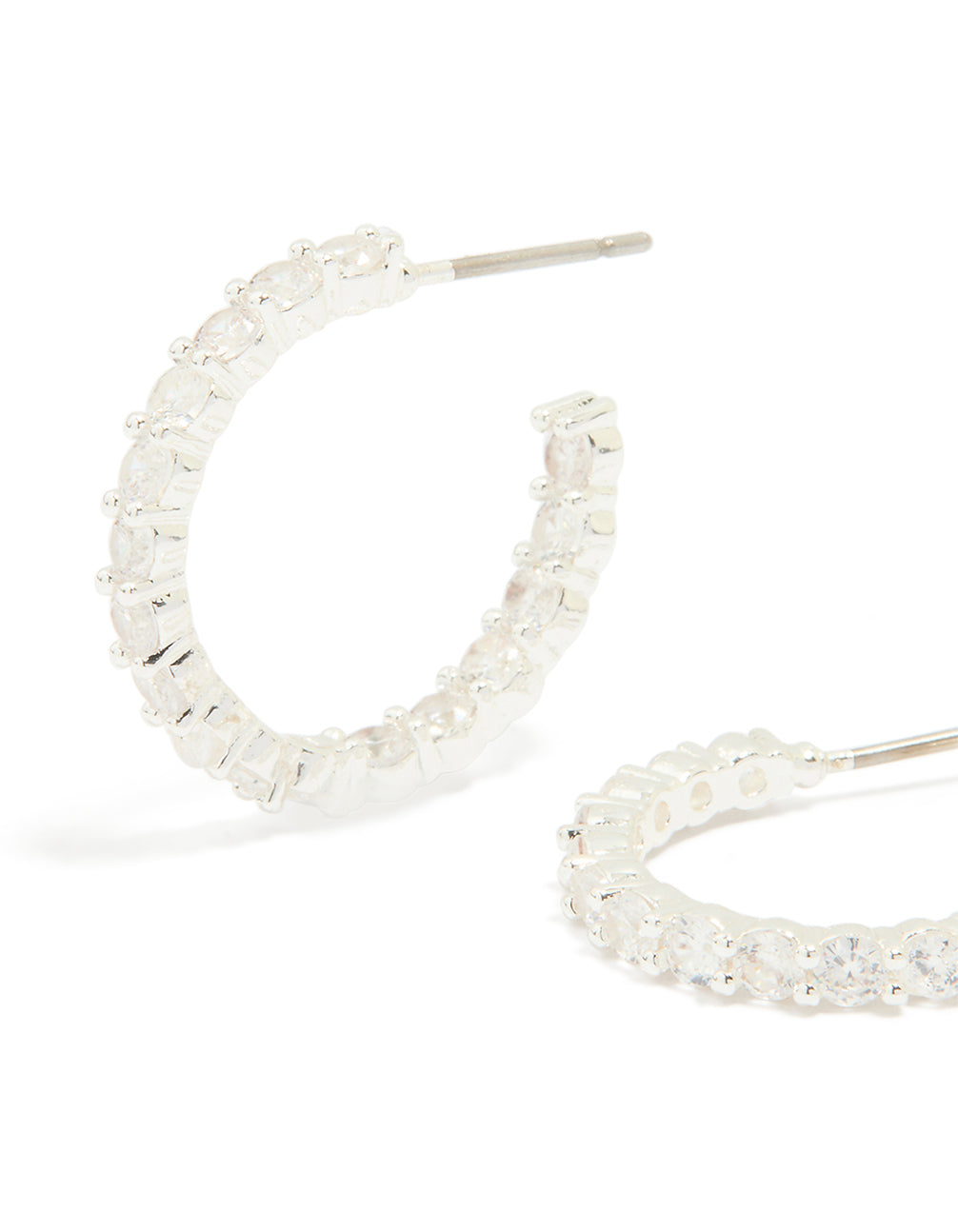 Silver Plated Cubic Zirconia Medium Round Hoop Earrings Silver Plated Cubic Zirconia Medium Round Hoop Earrings Silver Plated Cubic Zirconia Medium Round Hoop Earrings