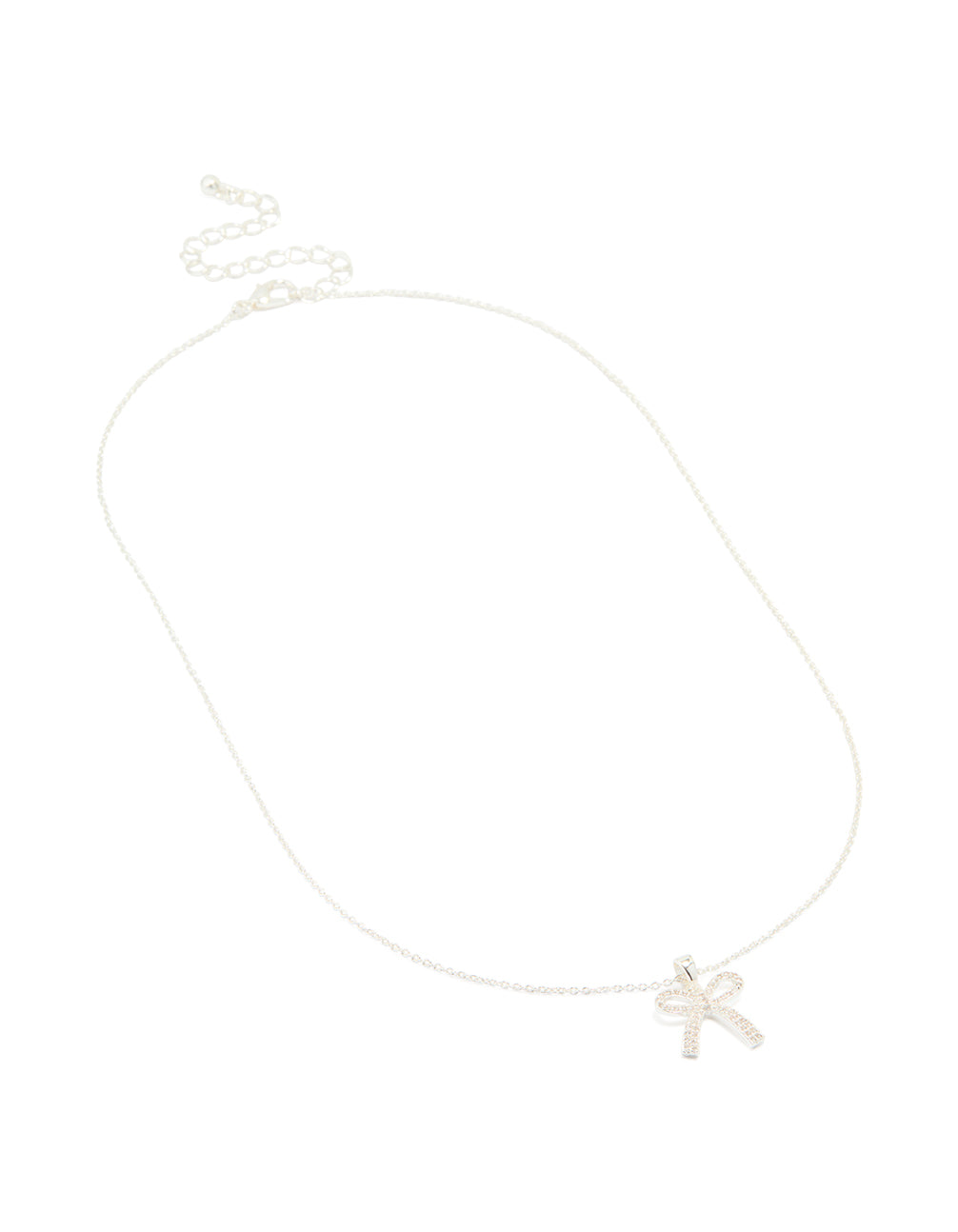 Add a touch of sparkle to your look with this Silver Plated Cubic Zirconia Pave Chunky Bow Necklace. Perfect for adding a playful yet elegant vibe, this pendant necklace showcases a striking chunky bow design encrusted with dazzling cubic zirconia crystals. The premium silver plating gives it a sleek, polished finish, making it a versatile choice for both casual and dressy occasions. Pair it with a chic blouse and jeans for a day out or style it with your favourite little black dress for a night on the town. Whether you're heading to a party, a date, or brunch with friends, this statement necklace is your go-to accessory for effortless glamour.