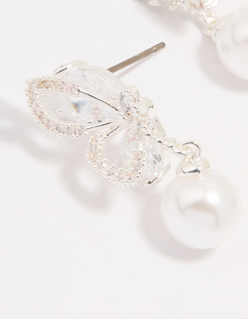 Silver Plated Cubic Zirconia Pearl Butterfly Drop Earrings