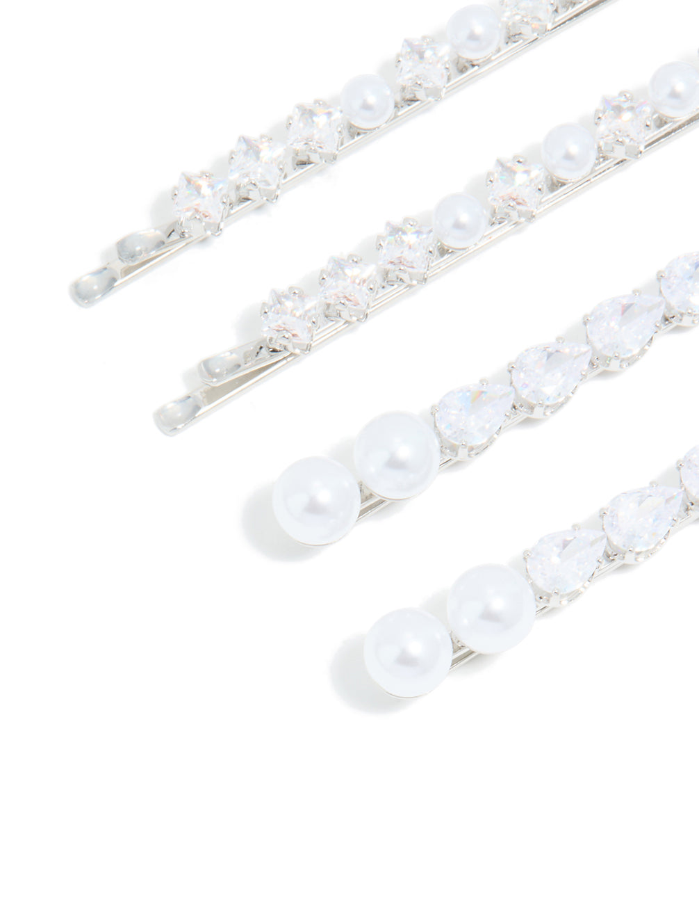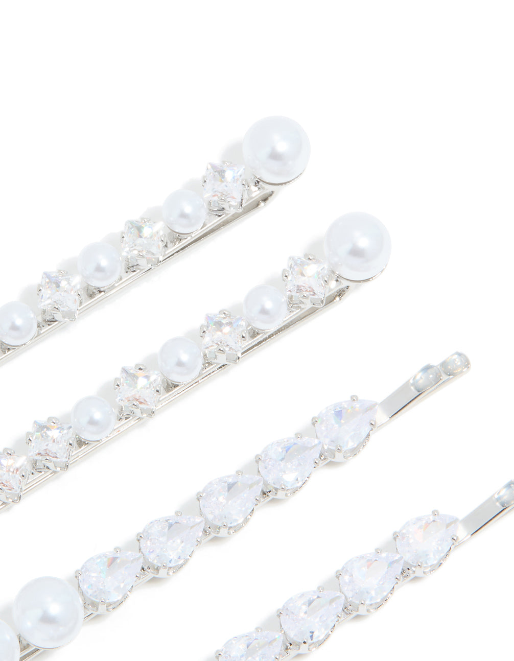 Silver Plated Cubic Zirconia & Pearl Hair Clips 4-Pack Silver Plated Cubic Zirconia & Pearl Hair Clips 4-Pack Silver Plated Cubic Zirconia & Pearl Hair Clips 4-Pack