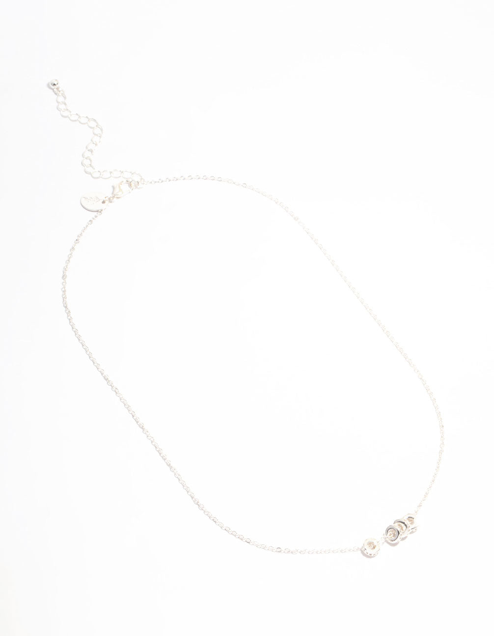 Spin into style with this stunning ring pendant necklace. This necklace features an effortlessly cool silver plated base, a dainty chain, and mini sparkling cubic zirconia rondell movable rings.