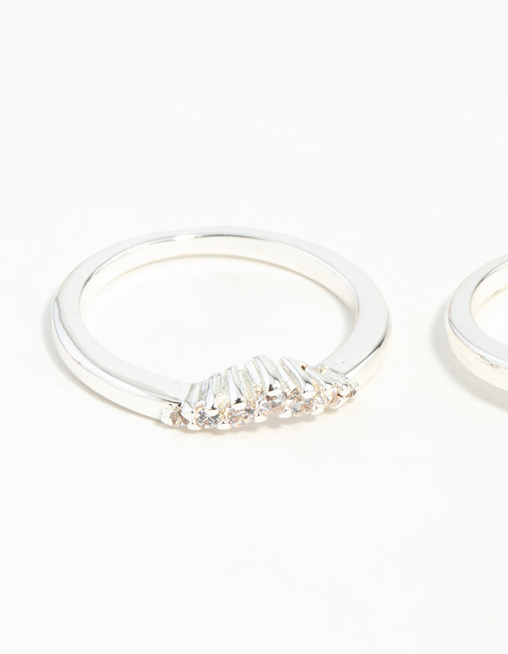 Sparkle with all the facets of a true diamond with cubic zirconia. These lab-created crystals are engineered to be indistinguishable from diamonds to the naked eye. This beautiful ring set features two stackable rings with cubic-zirconia embellishments.