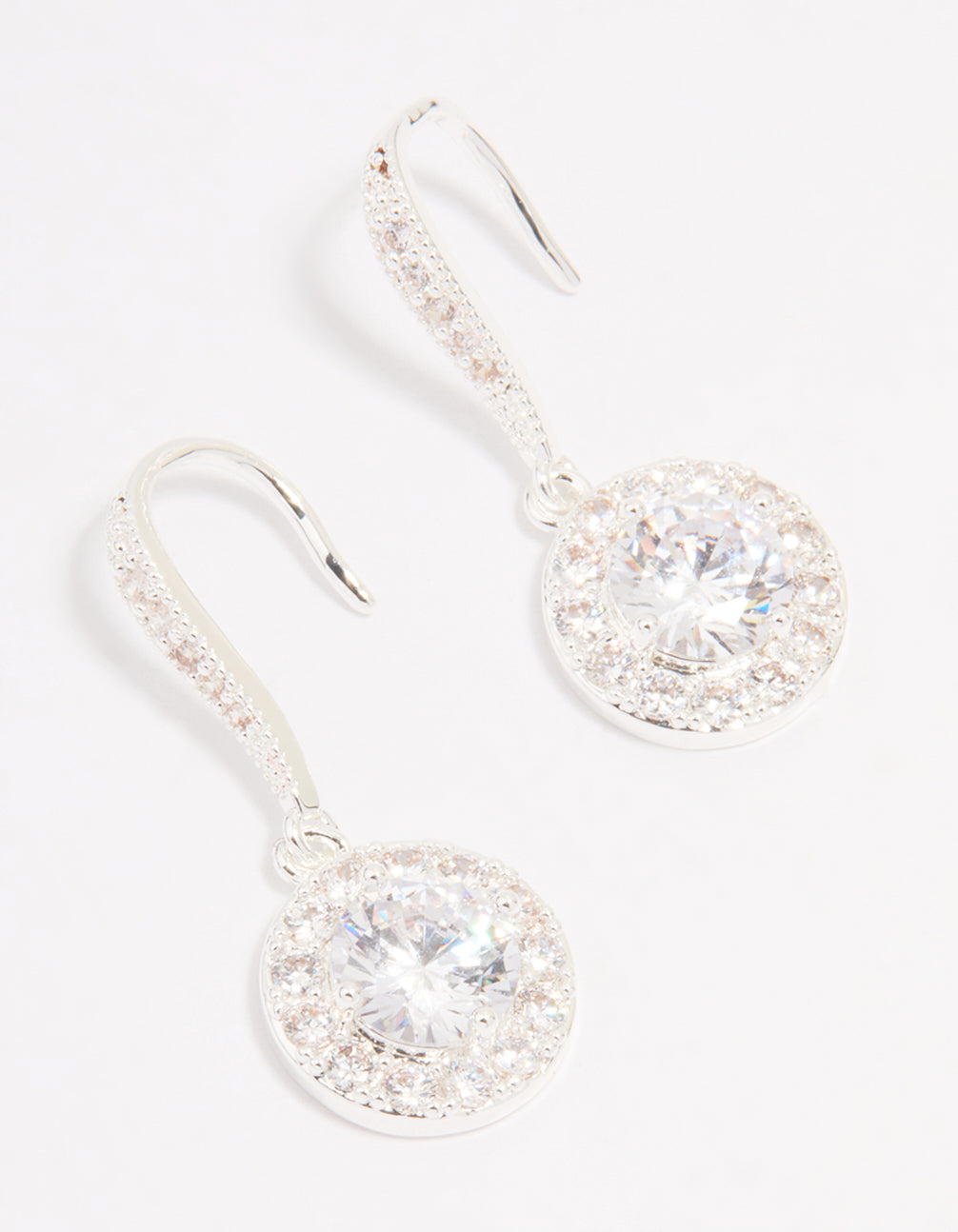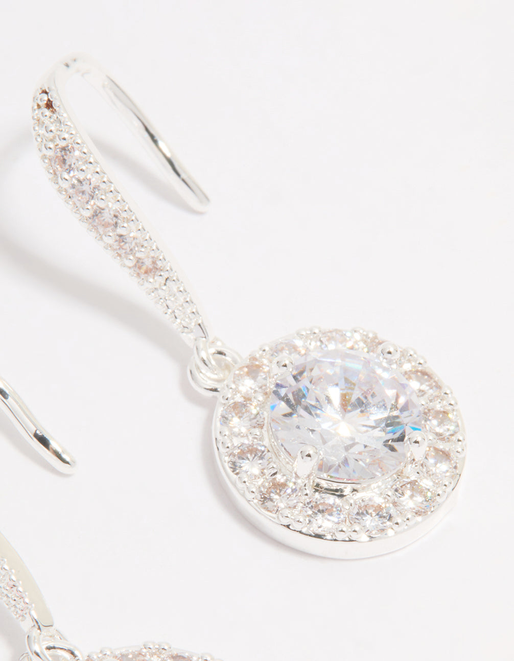 Silver Plated Cubic Zirconia Round Halo Drop Earrings