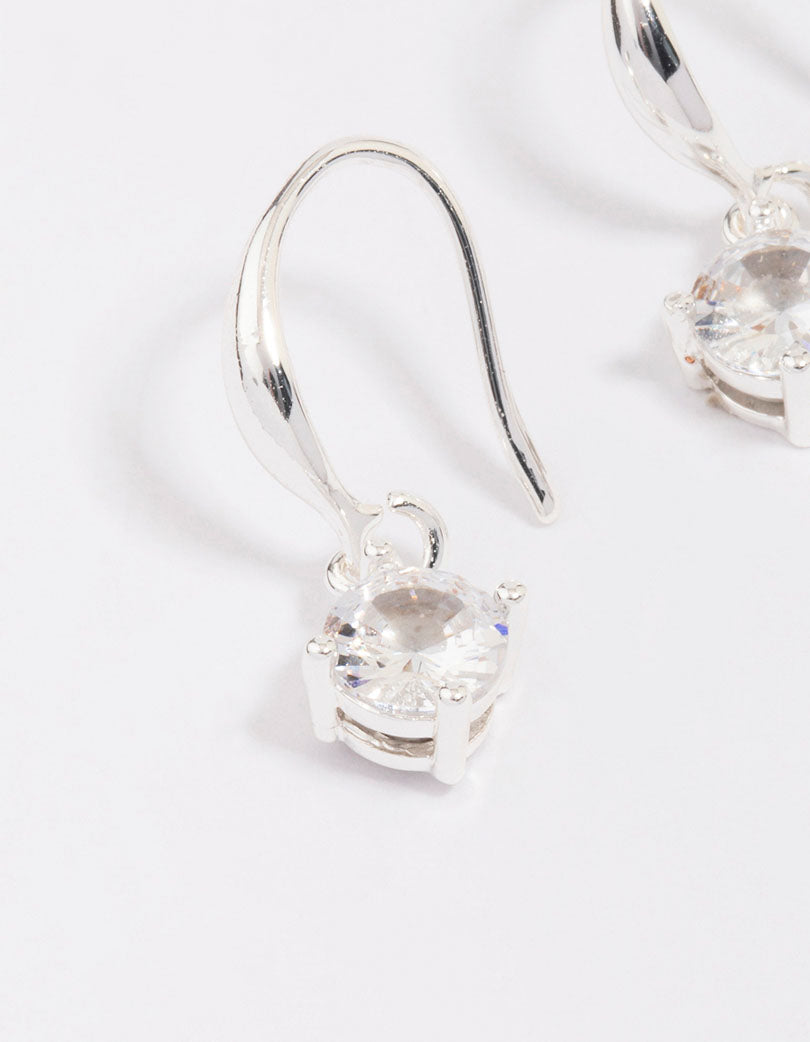 Silver Plated Cubic Zirconia Solitaire Hook Earrings