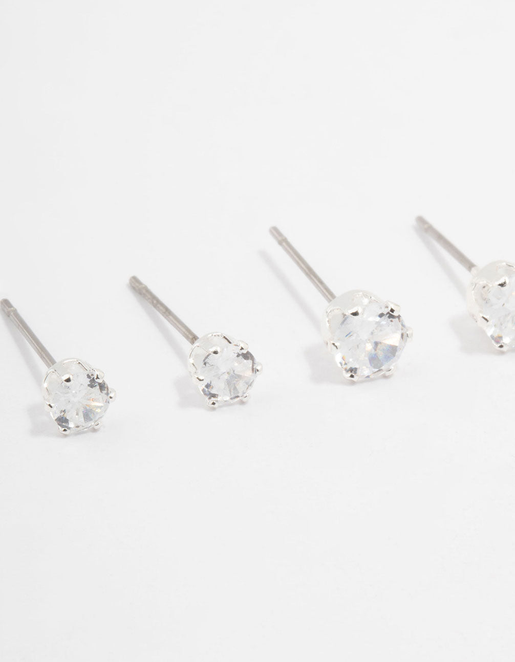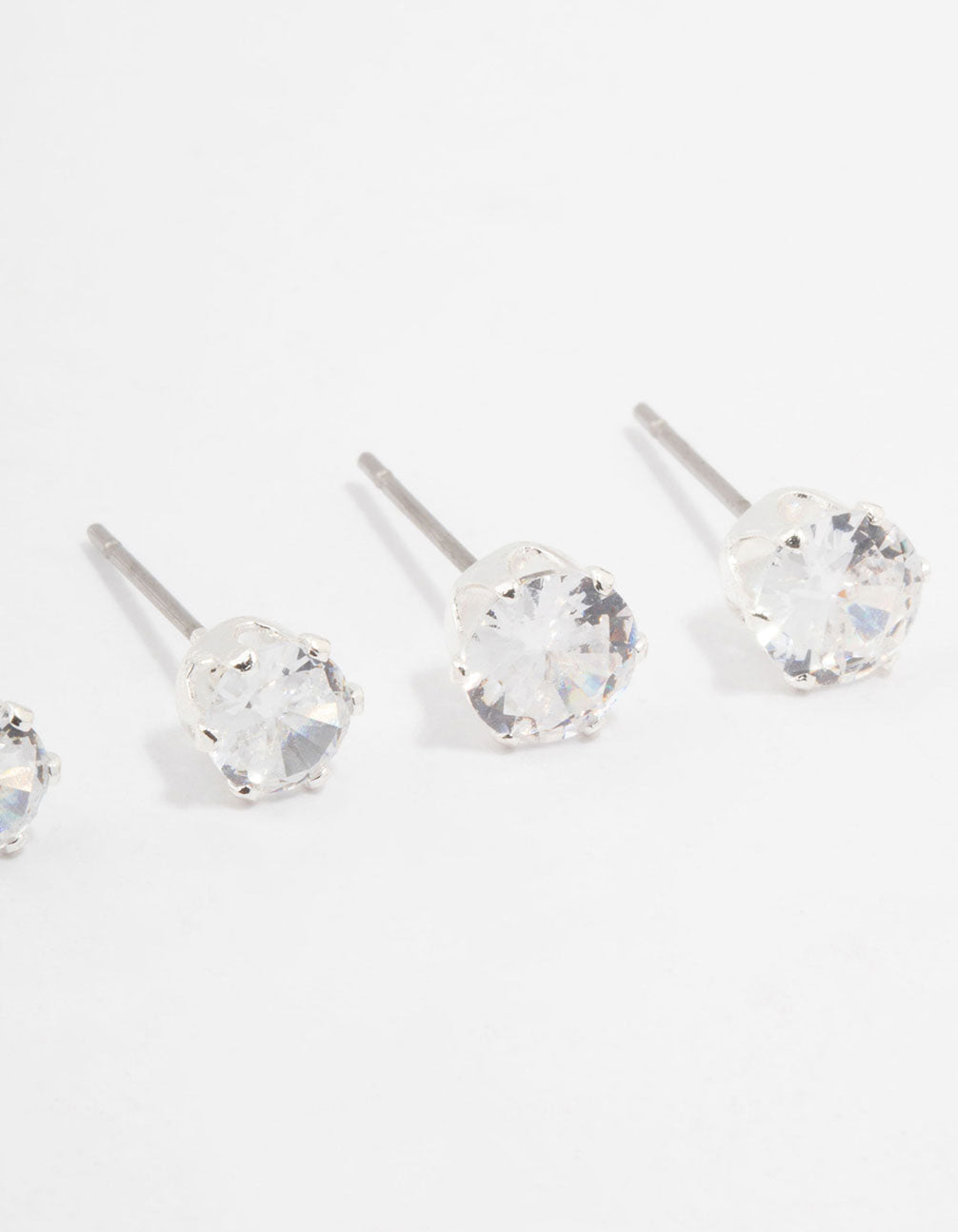 Silver Plated Cubic Zirconia Stud Earrings 3-Pack
