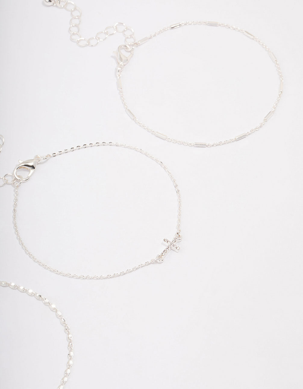 Silver Plated Diamante Cross Bracelet 3-Pack