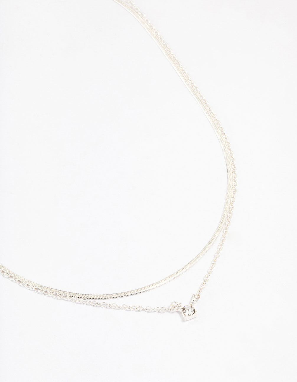 Silver Double Diamante Slinky Chain Layered Necklace