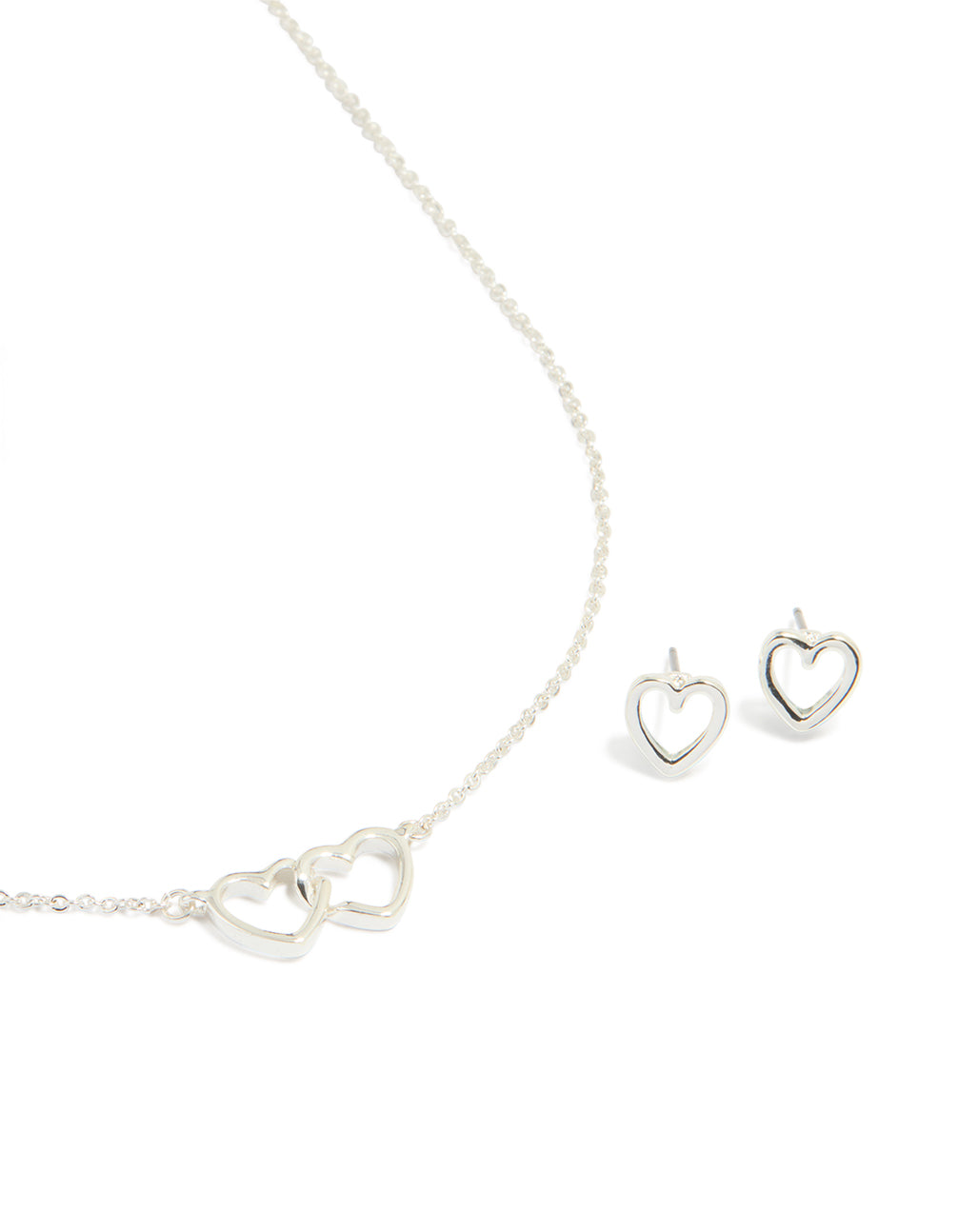 Add a touch of elegance to your look with this stunning Silver Plated Double Heart Necklace & Earrings Set. Featuring a delicate silver-plated necklace with two intertwined hearts, this set is all about timeless charm. The matching silver-plated stud earrings complete the look with effortless sophistication. Perfect for everything from date nights to weddings, this jewellery set is a versatile must-have. Style it with a little black dress for a classic vibe or pair it with a blouse and jeans to elevate your everyday outfits. Beautifully packaged in a gift box, it also makes an ideal present for birthdays, anniversaries, or any occasion worth celebrating.