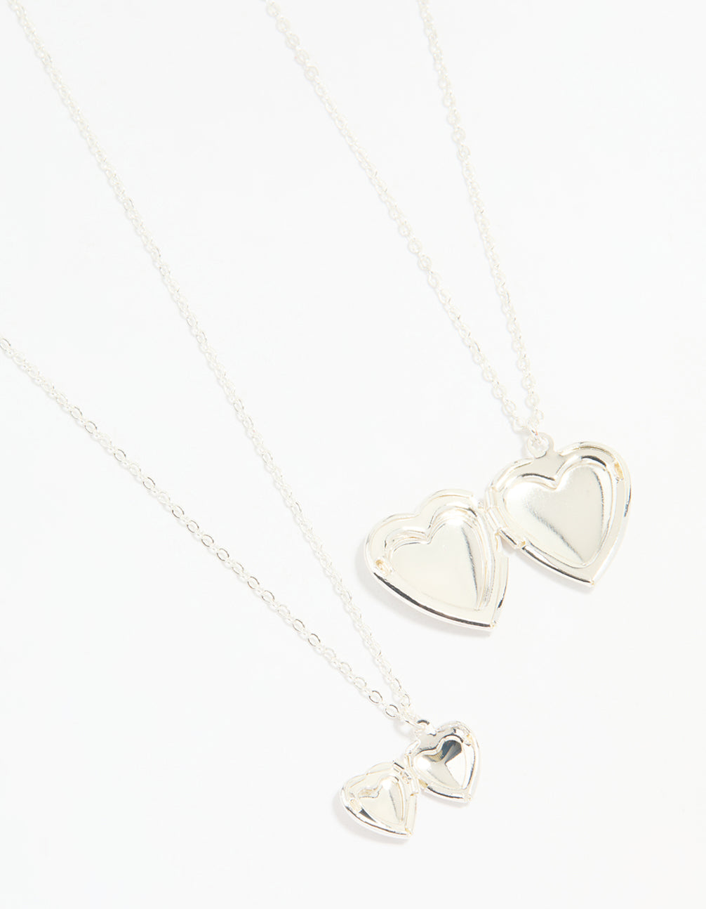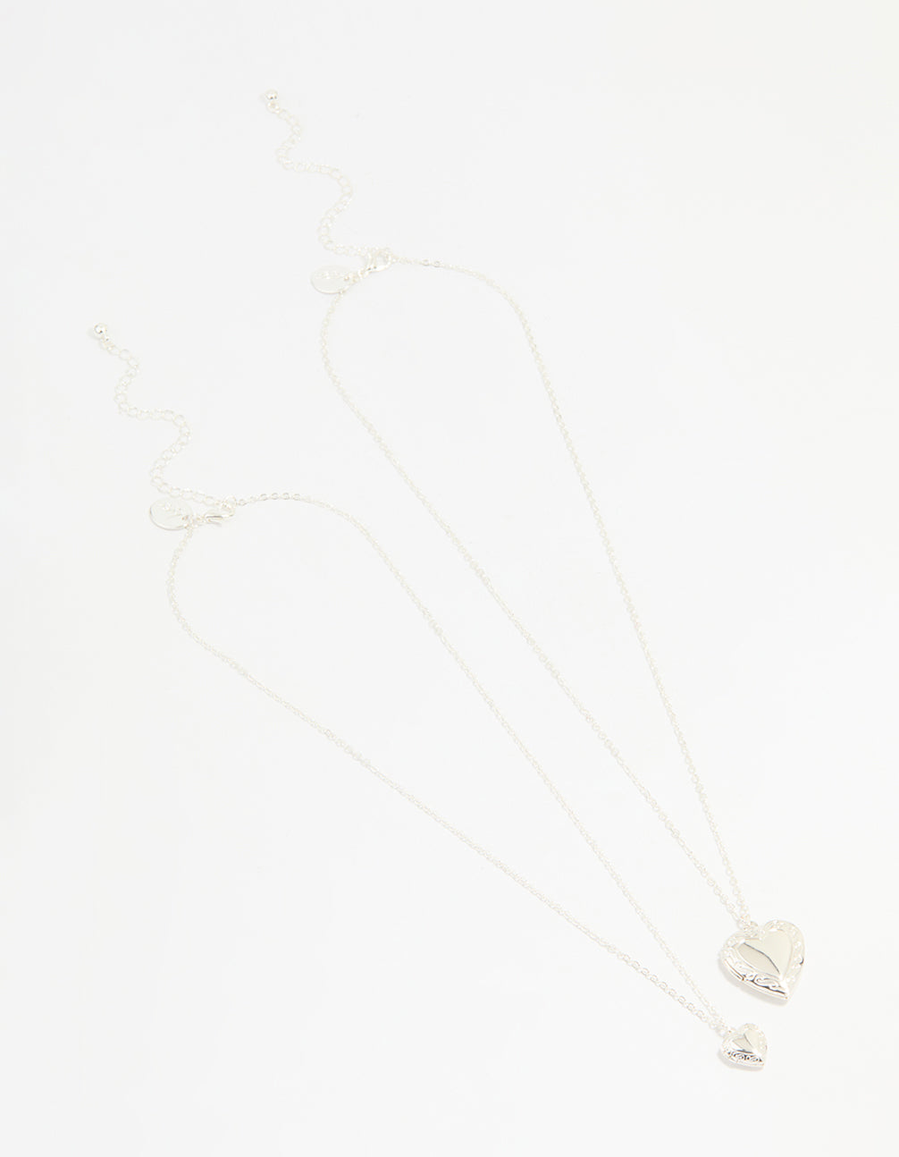Silver Plated Heart Pendant Necklaces 2-Pack