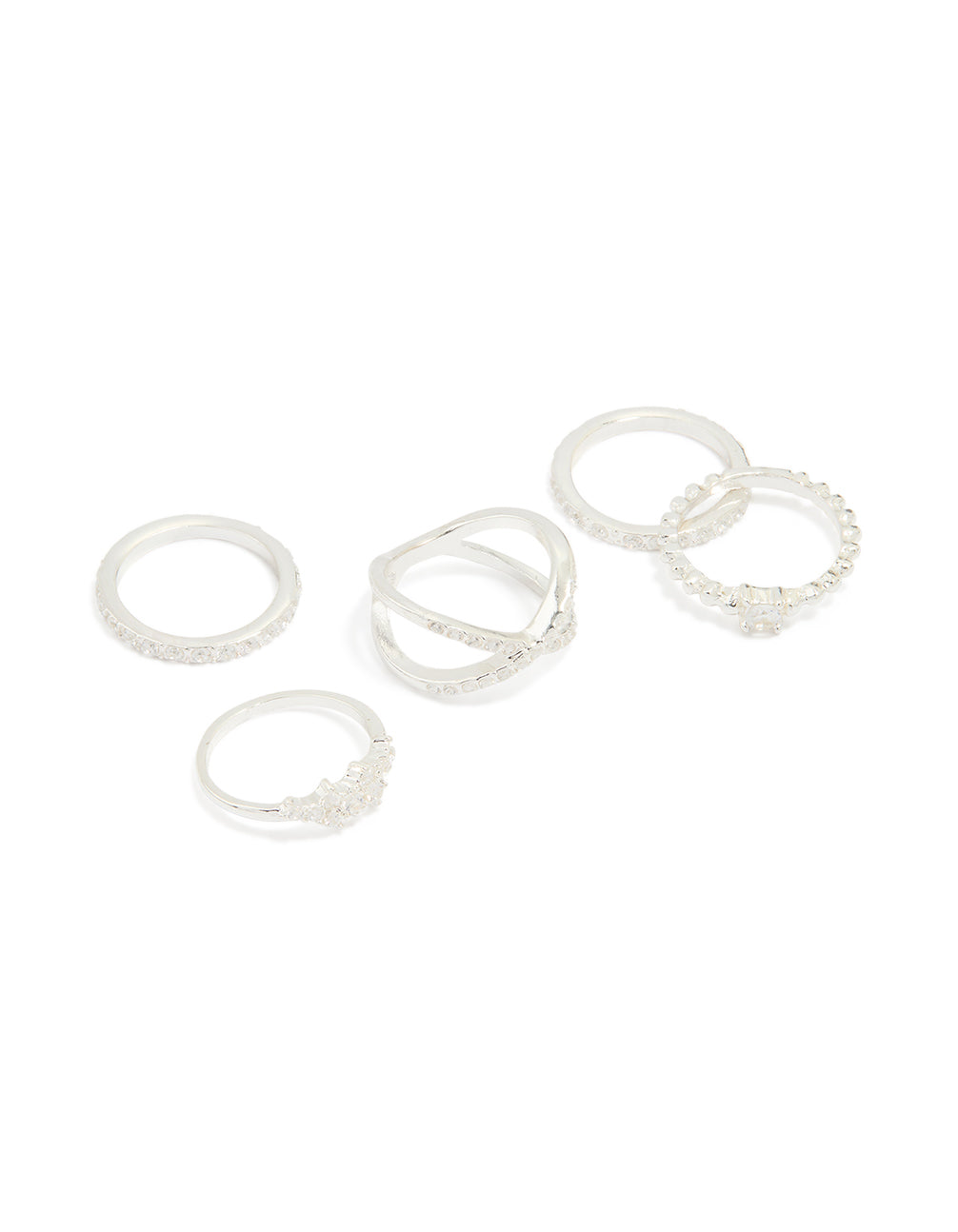 Silver Plated Mixed Diamante Cross Rings 5-Pack