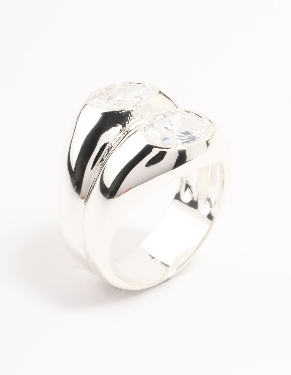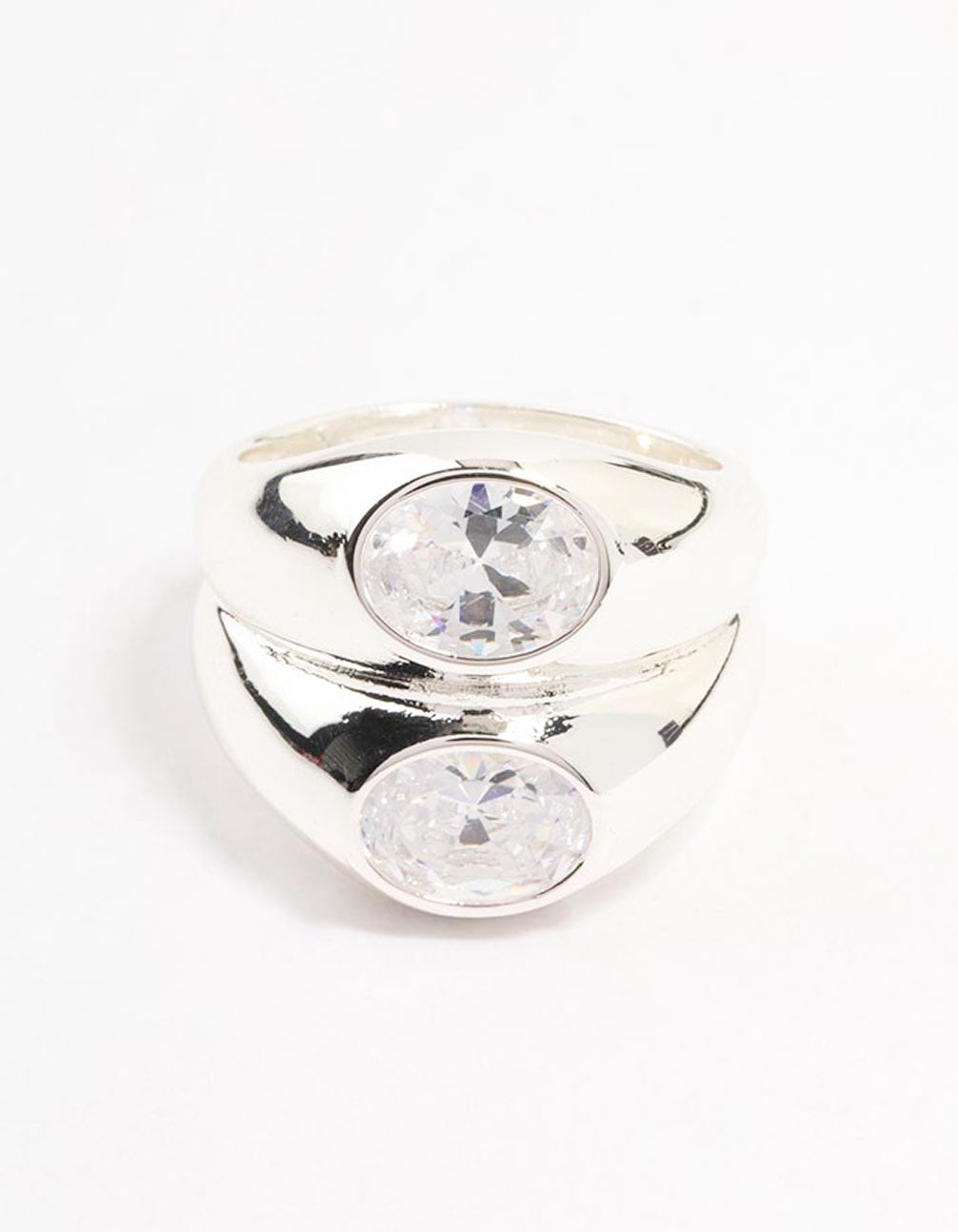 Silver Plated Oval Cubic Zirconia Puffy Stacking Ring