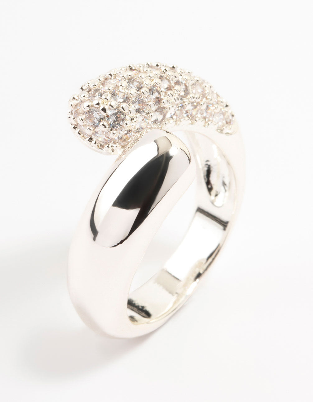 Silver Plated Pave Wrapped Cubic Zirconia Ring