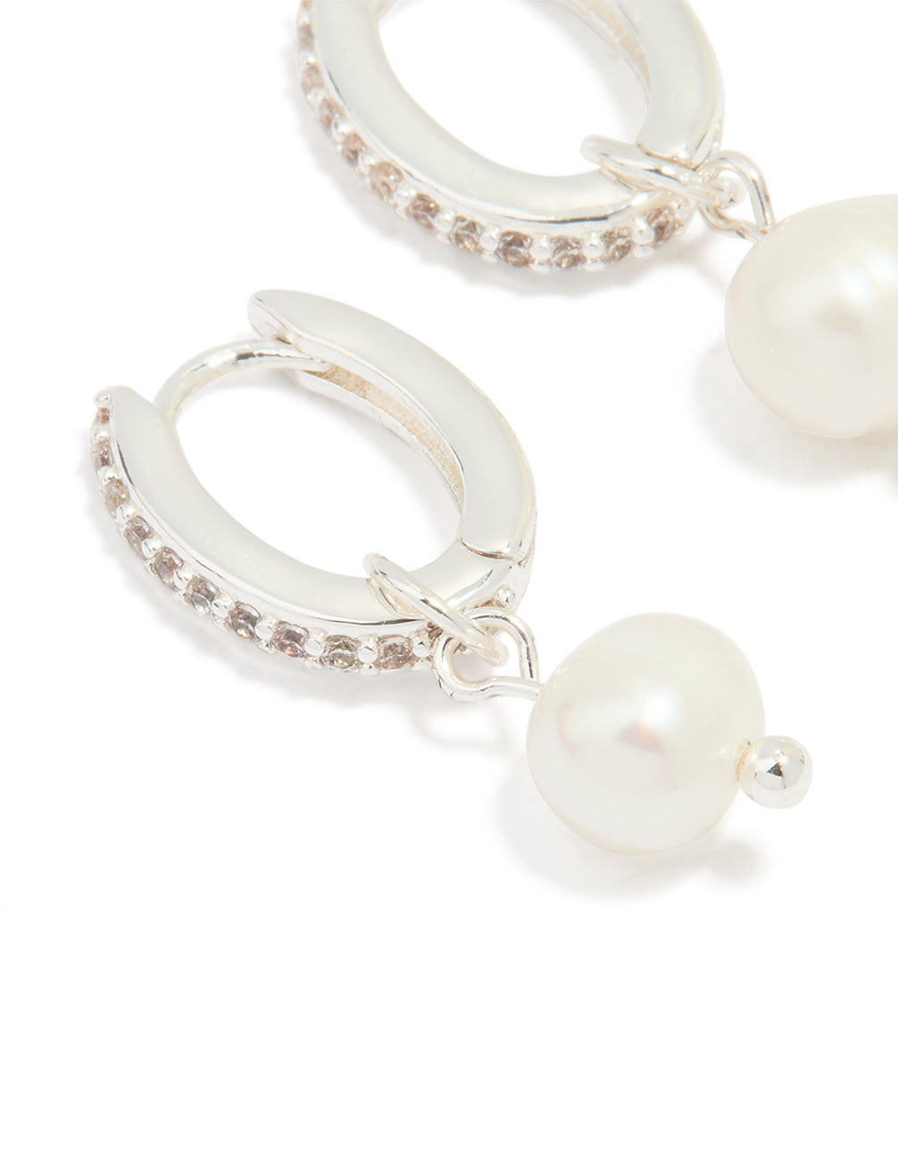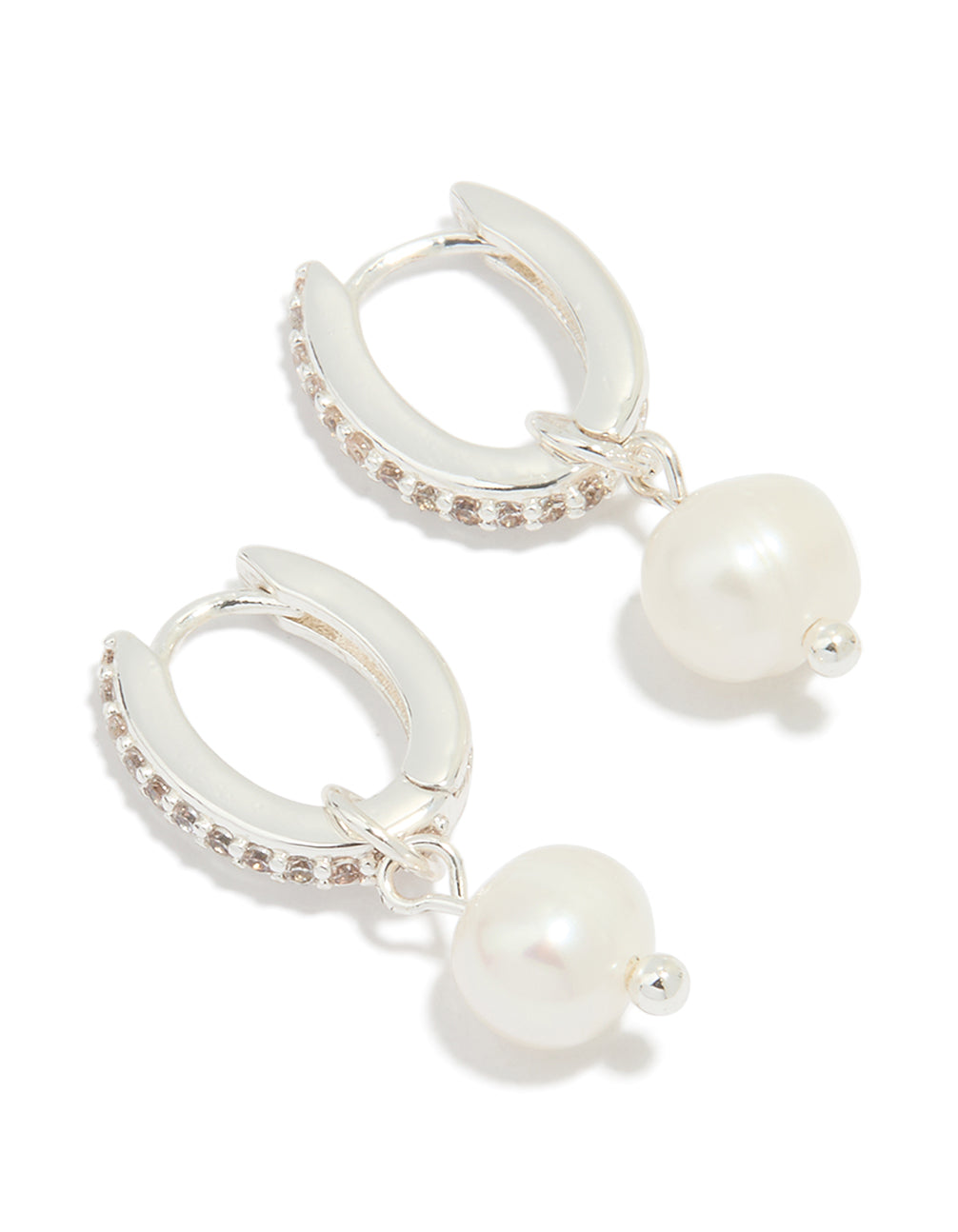 Silver Plated Pearl Cubic Zirconia Pave Drop Hoop Earrings