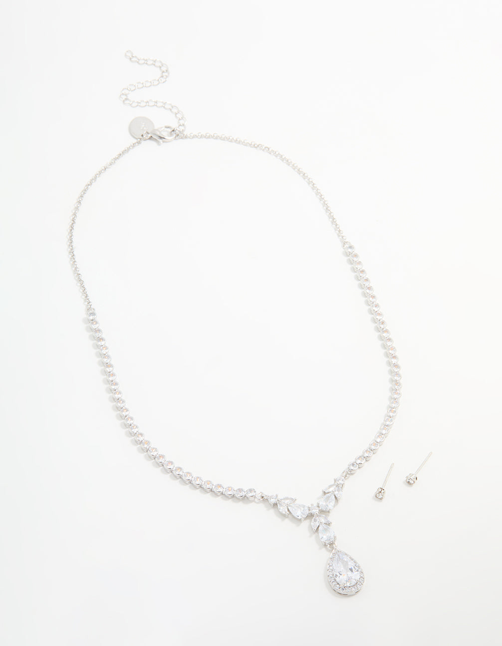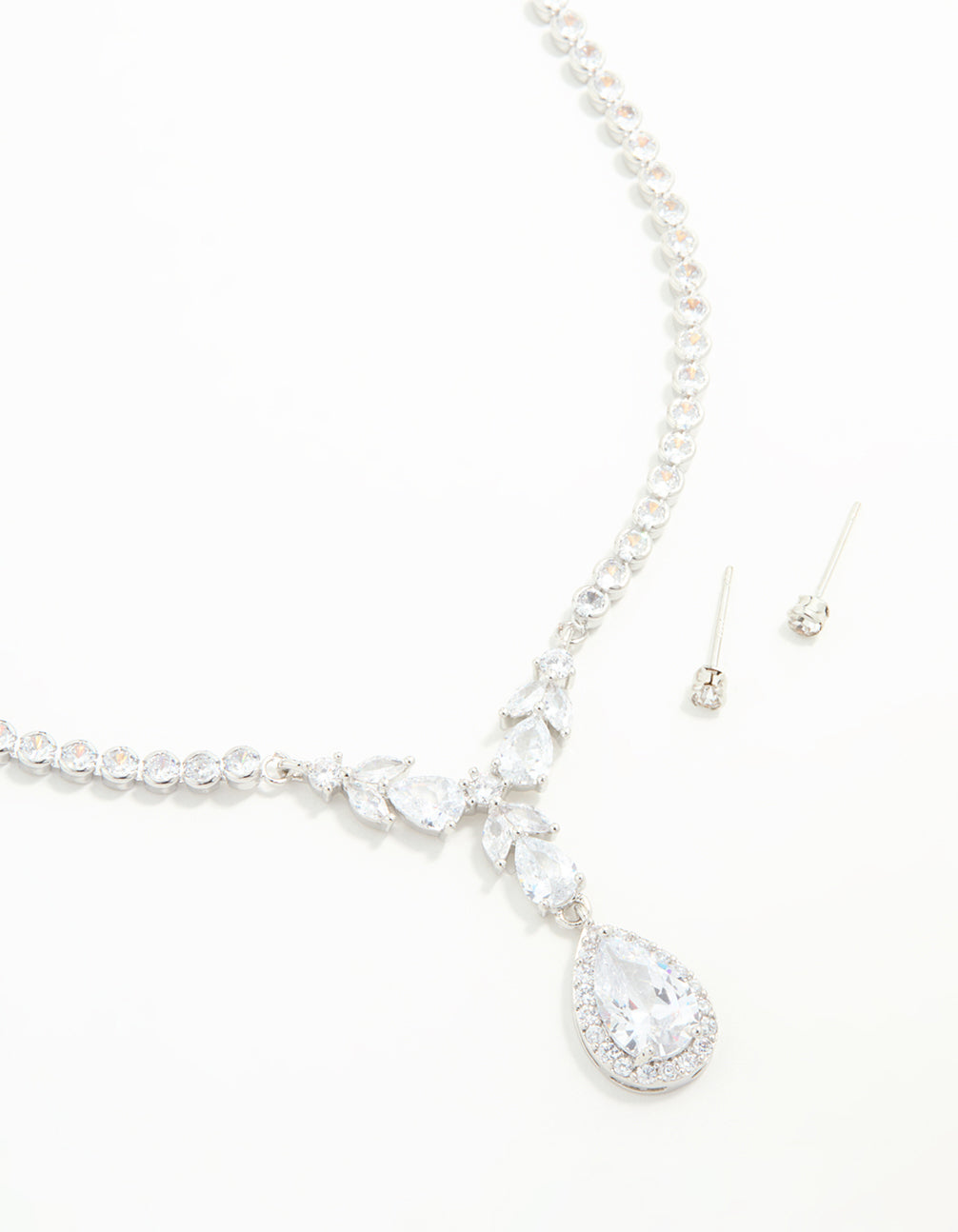 Shine on your special day with the Silver Plated Vine Necklace & Earring Set! This set features a delicate vine necklace and earrings. Pair it with a classic updo or a simple neckline for a timeless touch to your bridal ensemble.