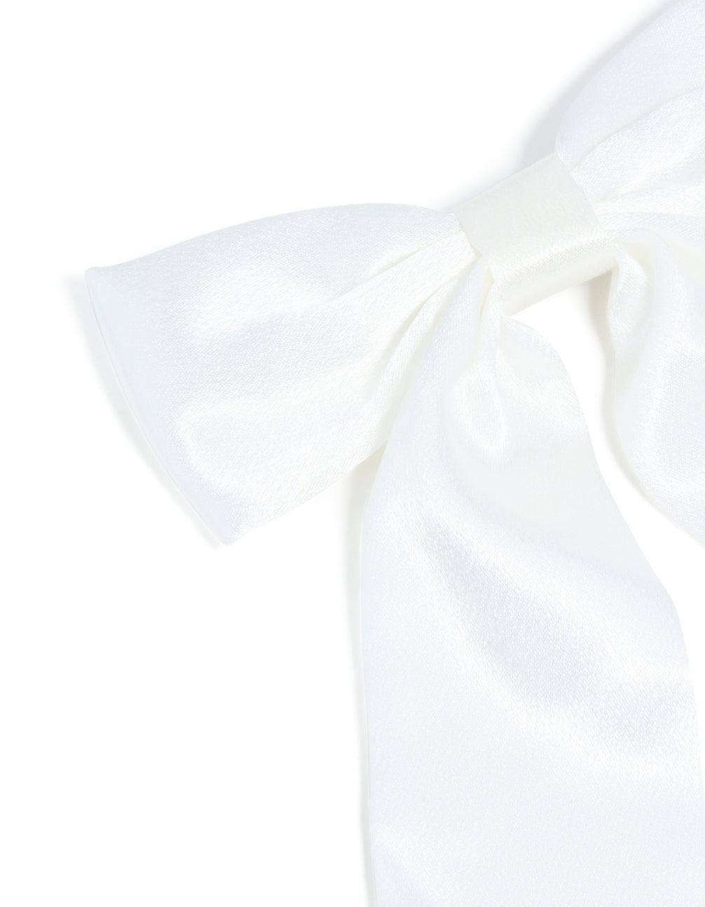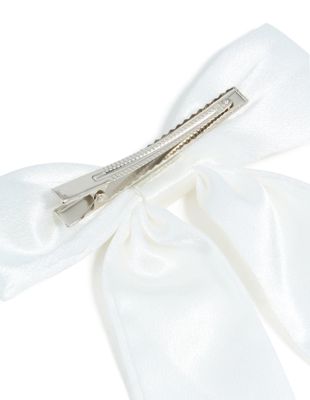 Add a touch of elegance to your special day with this Silver Plated White Shiny Fabric Long Bow. This stunning piece is the perfect bridal accessory, combining timeless charm with a modern twist. The long bow design, crafted from shiny white fabric for a sleek, sophisticated finish. Perfect for brides looking to elevate their wedding look, this versatile piece can be styled with everything from a flowing gown to a chic jumpsuit. Whether you're walking down the aisle, attending a glamorous reception, or celebrating your engagement, this bow is a graceful addition to your jewellery collection.