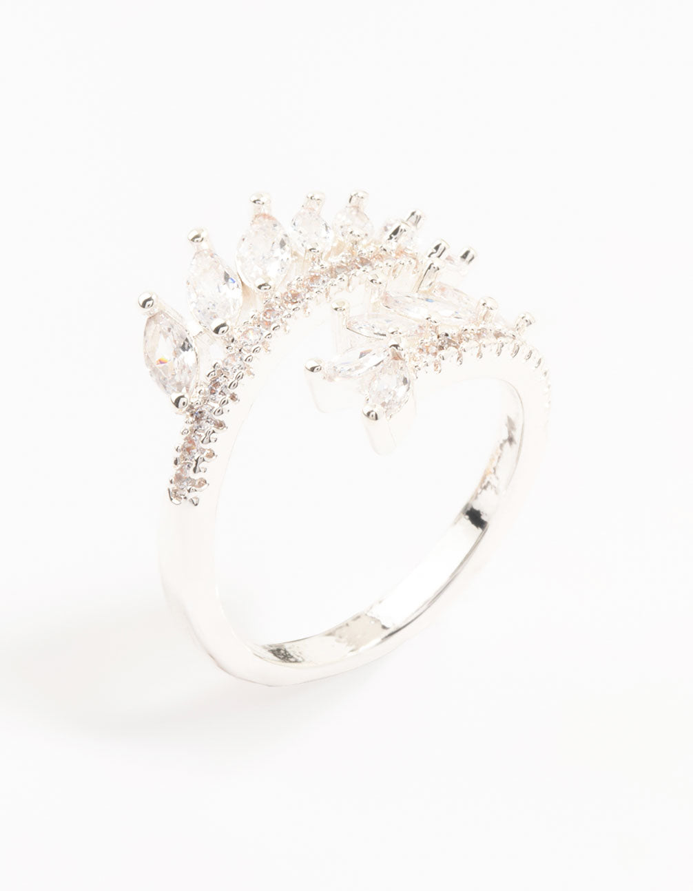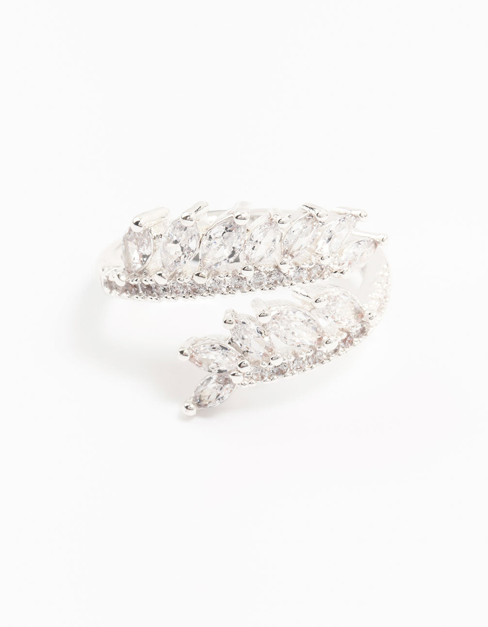 This lovely silver-plated ring wraps around your finger like a delicate vine, adorned with shimmering cubic zirconia for effortless elegance. Elevate your everyday look with this captivating accessory, perfect for adding a touch of allure and style.