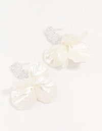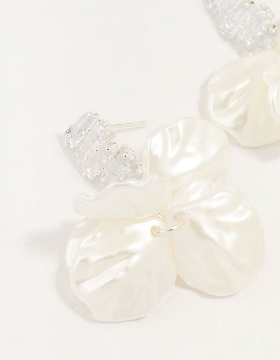 Be the most beautiful bride with these elegant drop earrings. They feature zigzag-shaped silver frames adorned with sparkling clear stones, dangling petal-shaped silver pendants with an antique finish for an eye-catching touch.