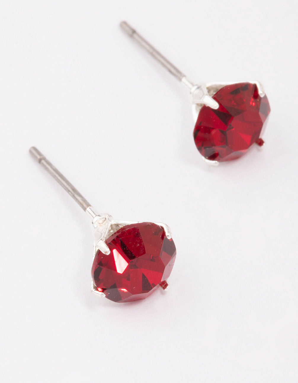 This set of simple stud earrings feature round, ruby-coloured czech crystals for a touch of sparkle.