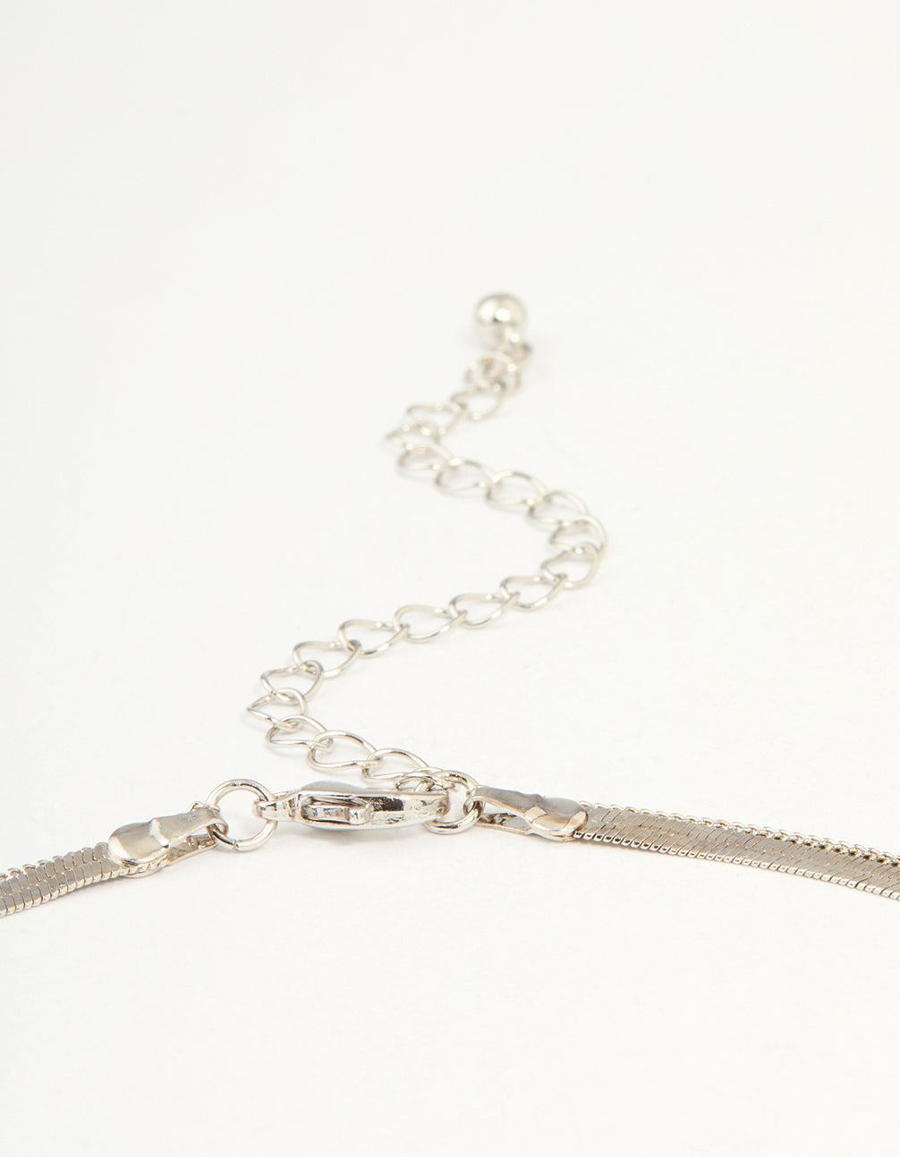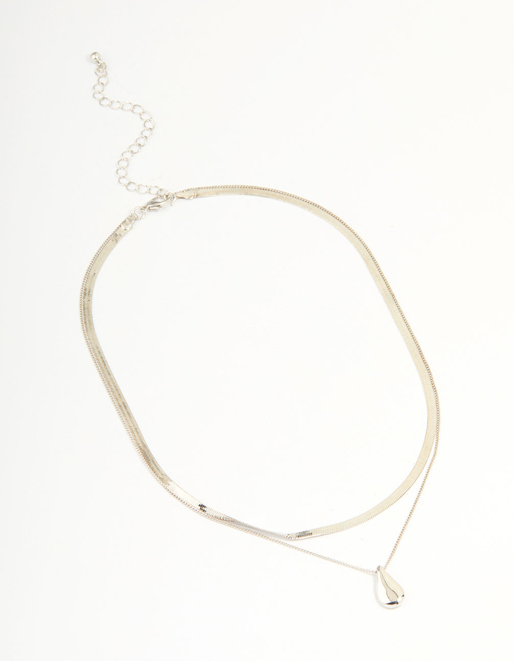Silver Snake Chain & Organic Pendant Double Layered Necklace