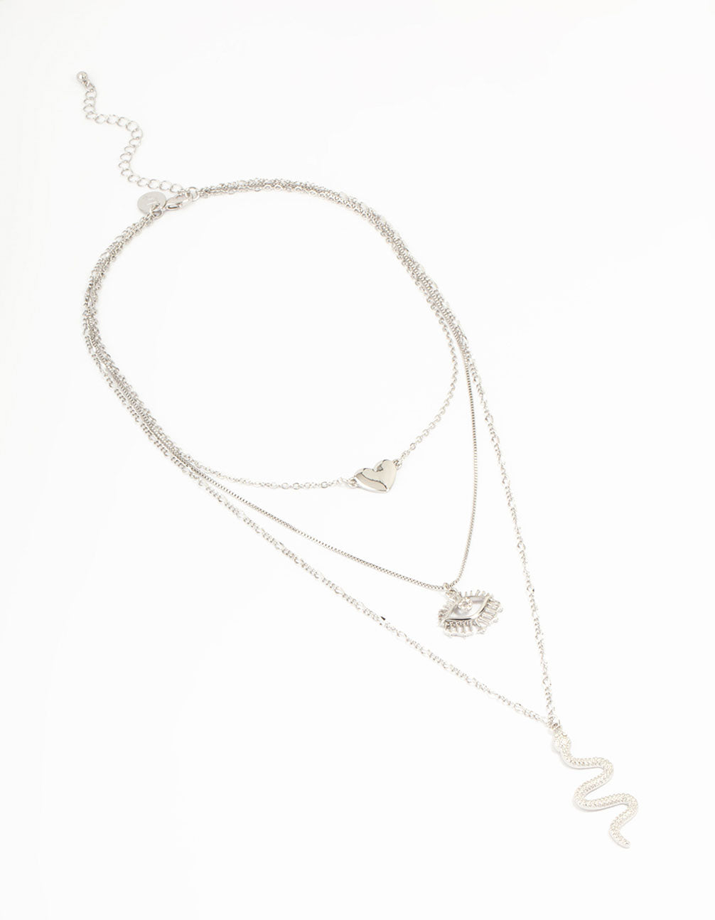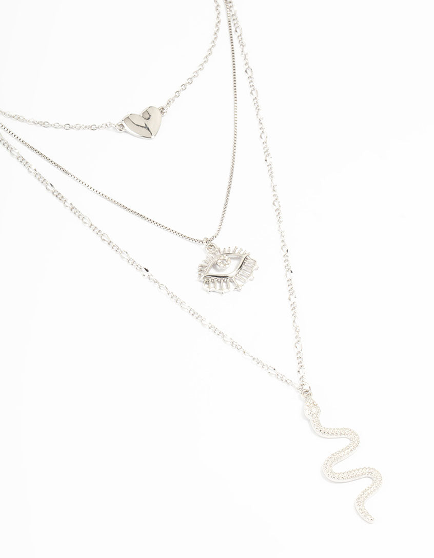Silver Snake & Eye Layered Necklace Silver Snake & Eye Layered Necklace Silver Snake & Eye Layered Necklace