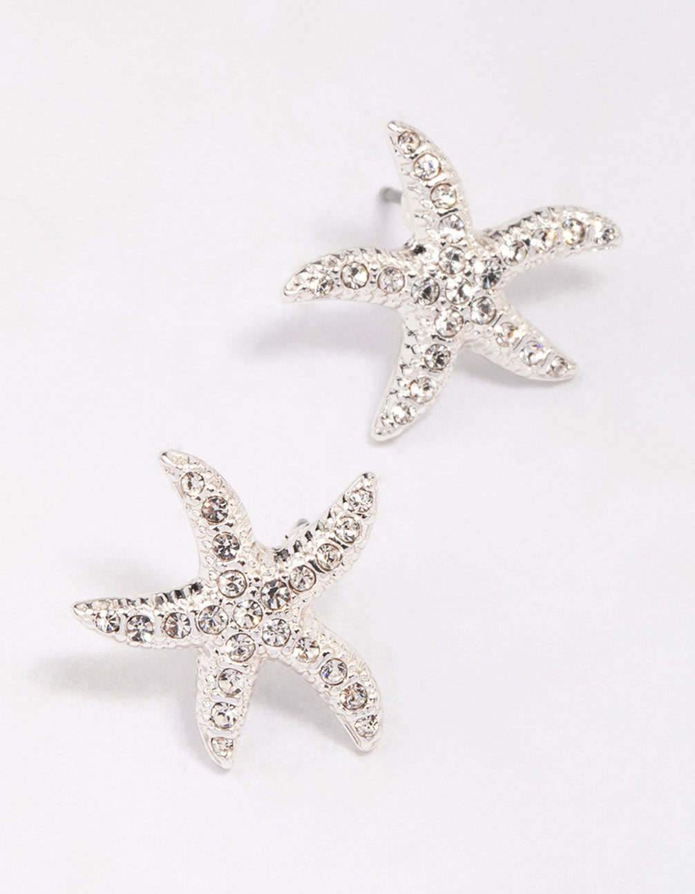 Accessorise like you're on vacation with these stunning, silver stud earrings. These unique studs feature a diamante-studded, starfish silhouette.