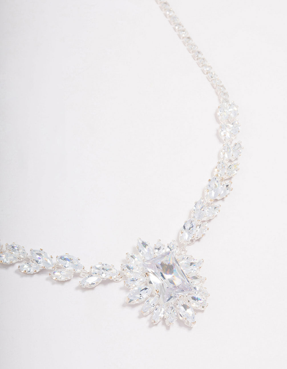 Complete your outfit with this sleek, silver-toned pendant necklace. This premium pendant features a large, floral pendant — encrusted with cubic zirconia crystals for a glamorous finish.