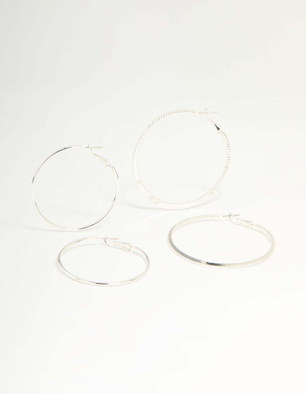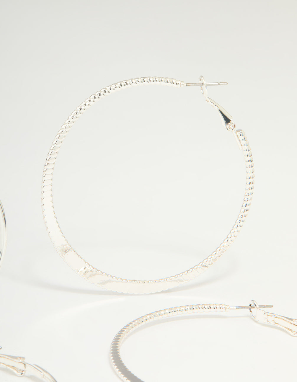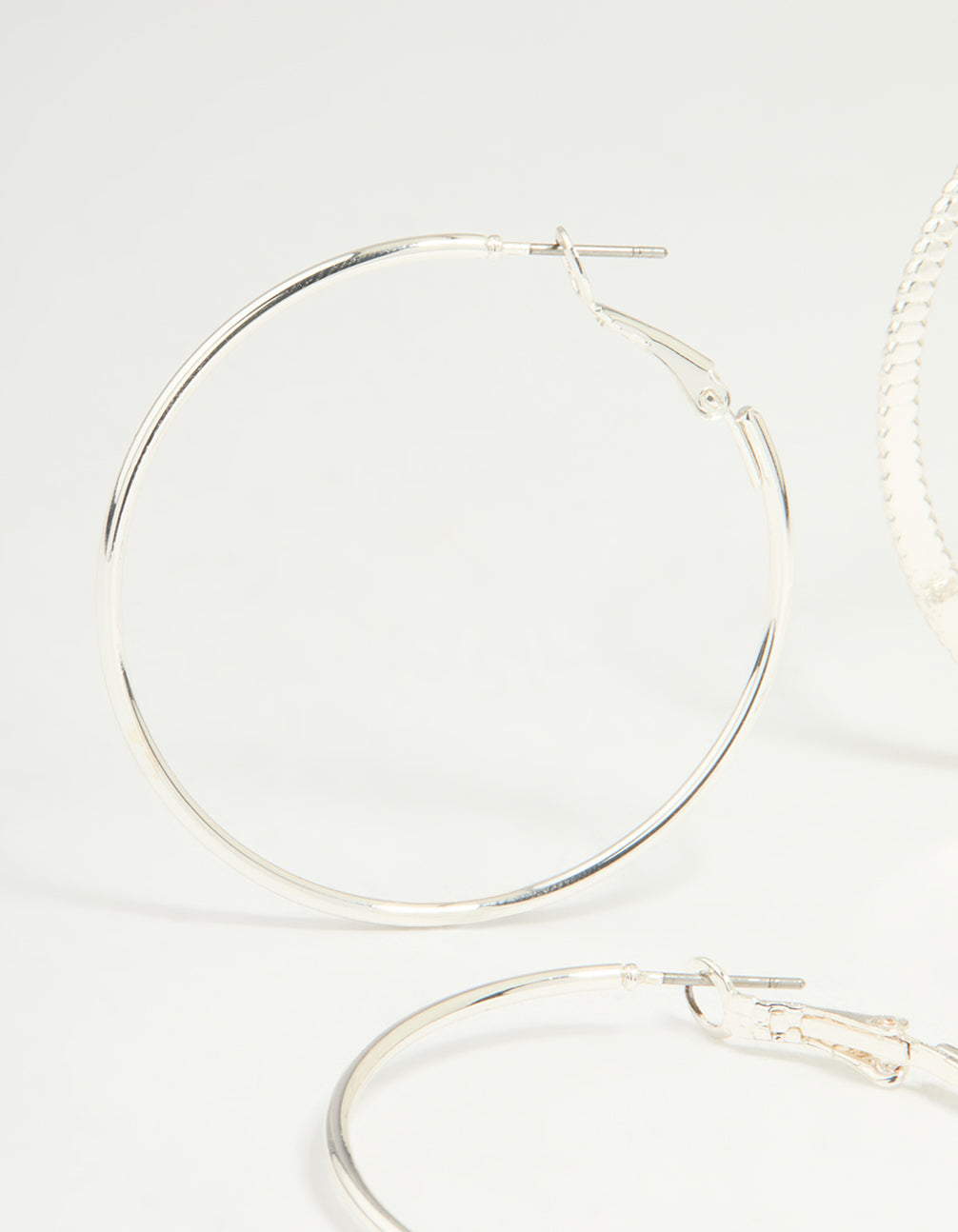 Silver Textured & Plain Hoop Earrings 2-Pack
