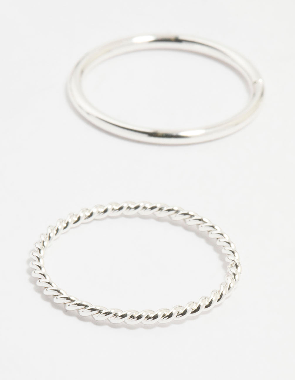Stack your style with this Silver Thick Simple Stacking Rings Pack! These bold, versatile rings are perfect for adding effortless flair to any look. With their clean, simple sleek and twisted designs and polished silver finish, they're ideal for dressing up or down. Wear them on their own for a sleek vibe or layer them for a stylish stacked effect. Perfect for everyday wear, whether you're heading to brunch, a casual day out, or a night with friends. Pair them with everything from jeans and a tee to a chic dress for a touch of modern elegance. These stacking rings are your go-to jewellery staples for mixing, matching, and making a statement!